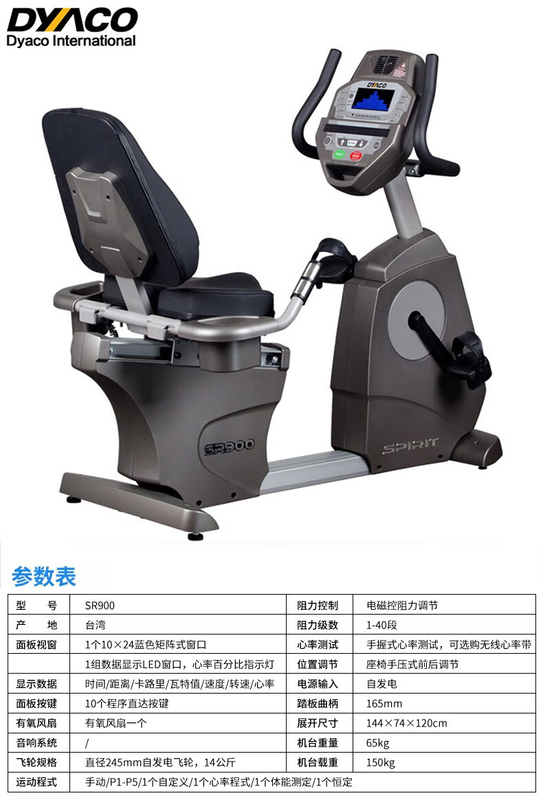 DYACO Commercial Exercise Bike Original Imported Self-Powered Horizontal Spin Bike SR900 Door-to-Door Delivery Package Installation