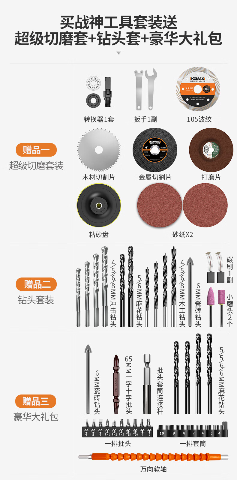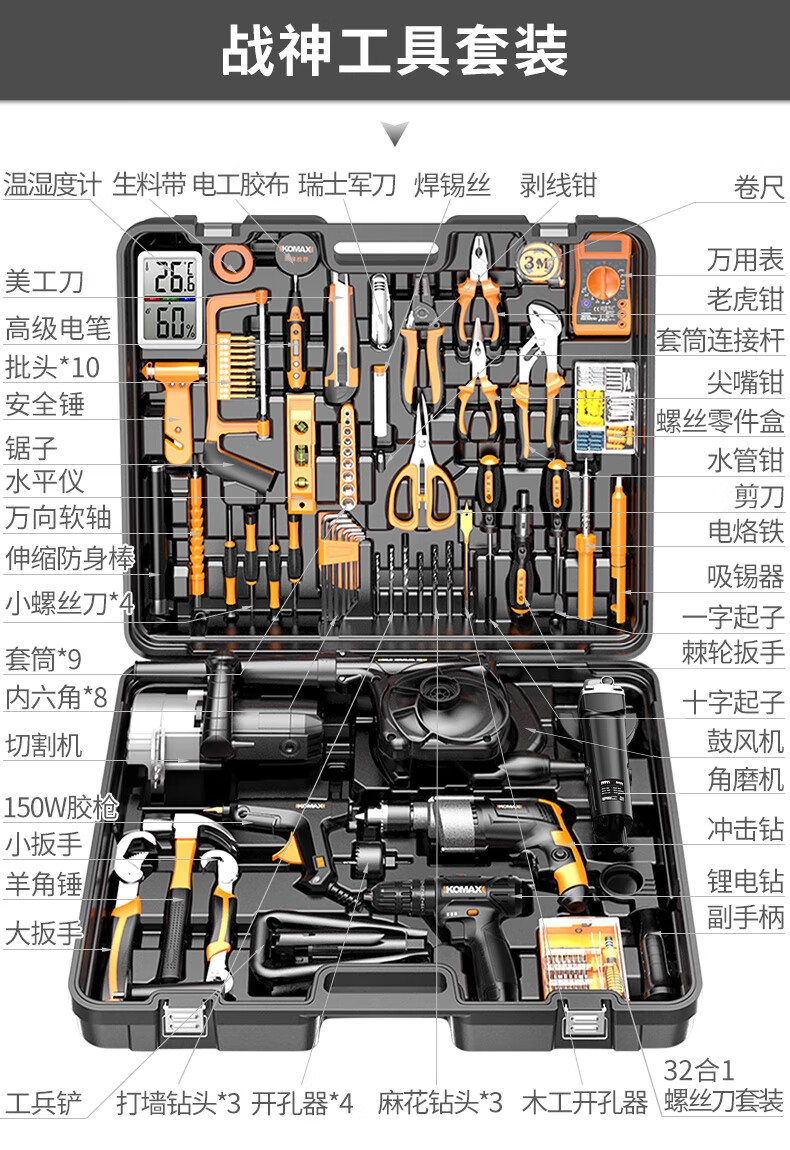 Komax Tool Box Full Set Impact Drill Hand Electric Drill Electric Hand Tool Set Household Hardware Set Electrician Woodworking Repair God of War Set