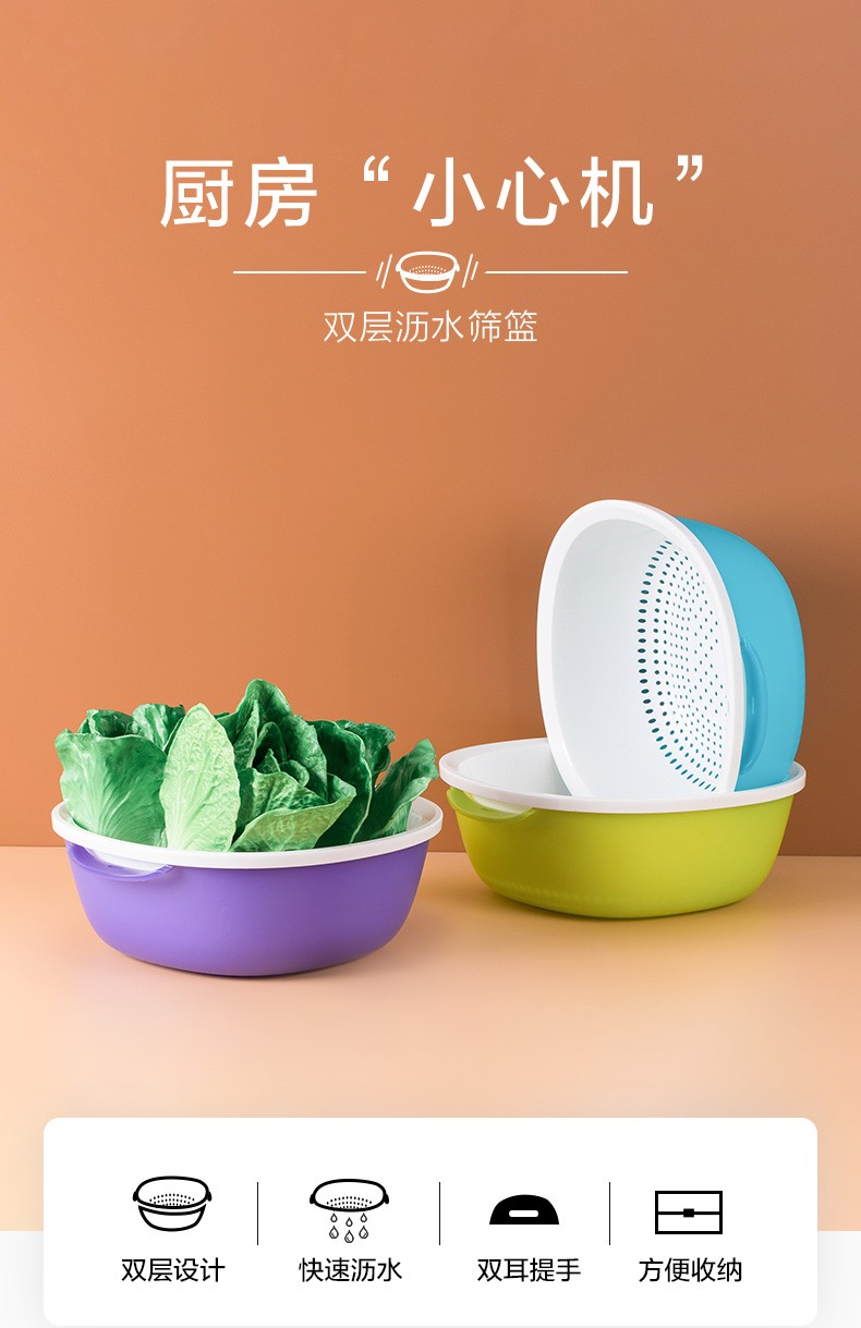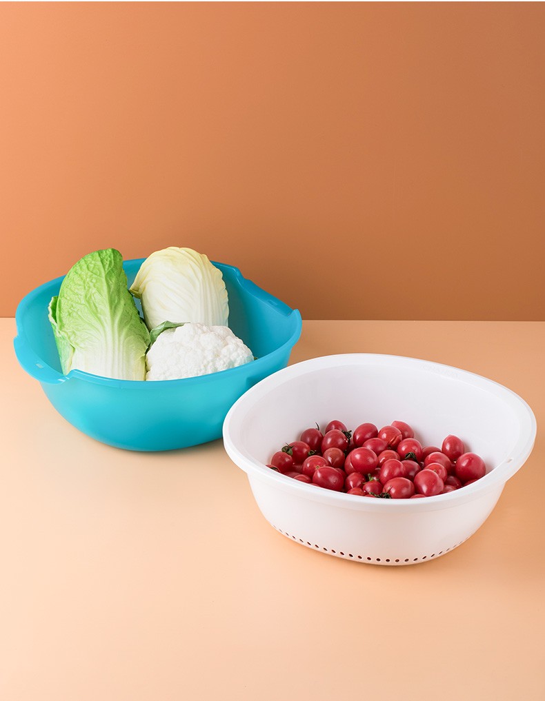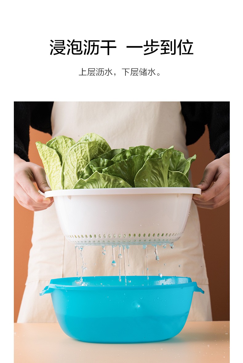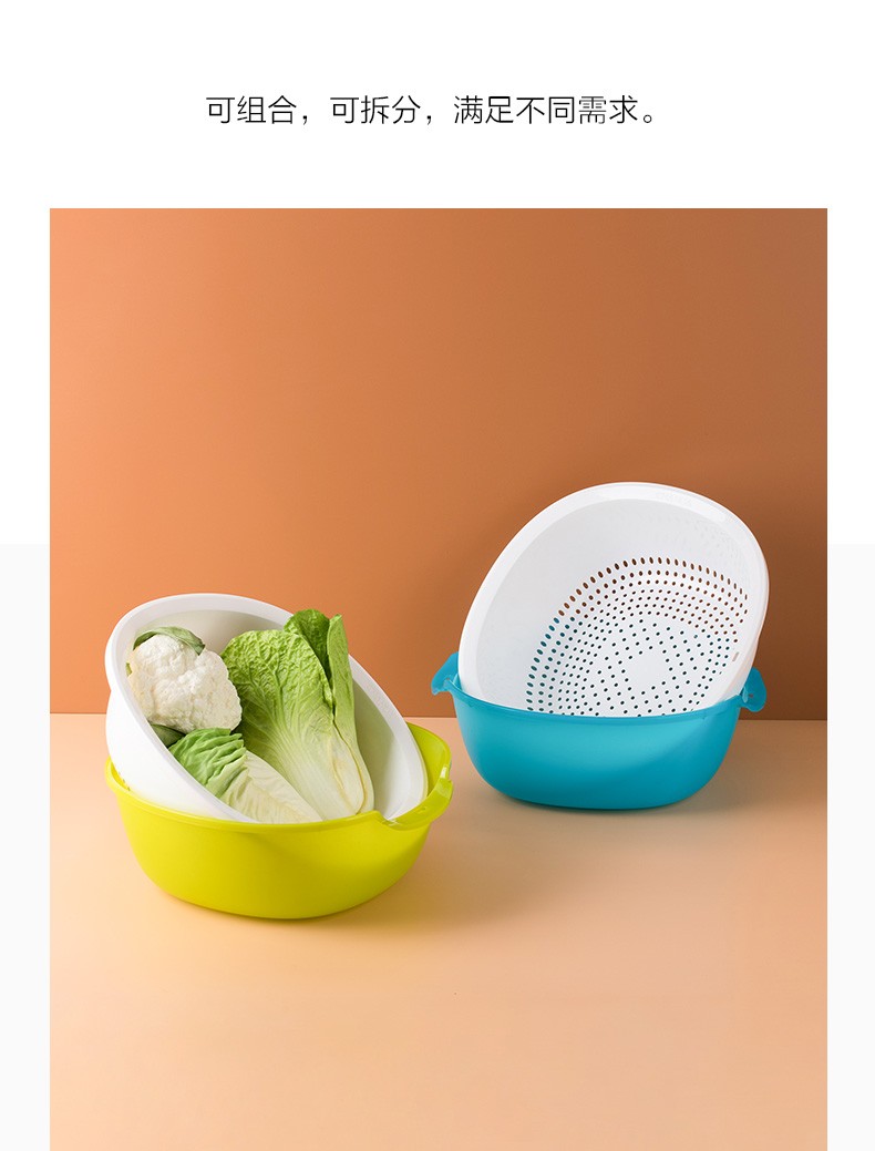 Camellia double-layer square round water filter sieve frame plastic dripping basket fruit basket multi-purpose vegetable washing basket washing fruit draining basket new green