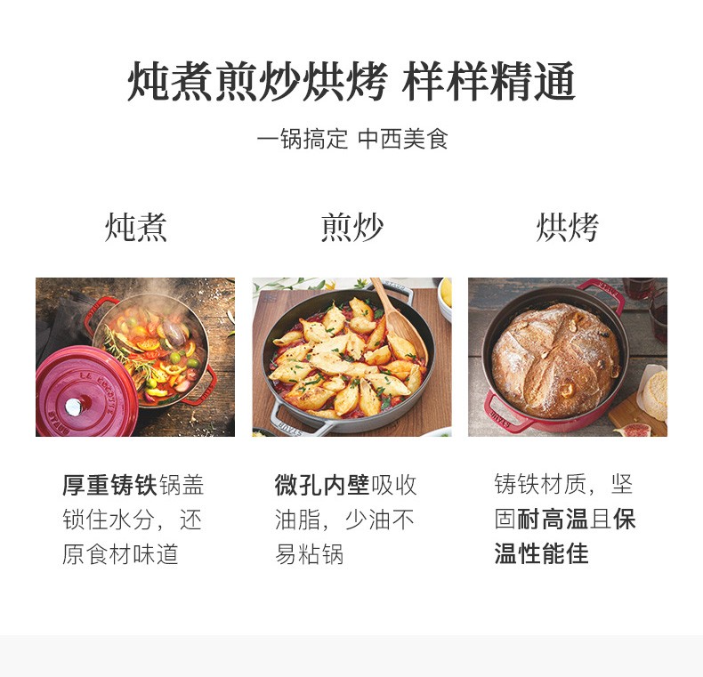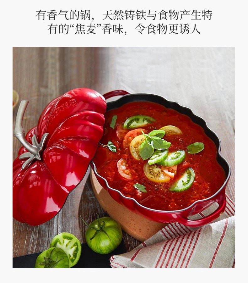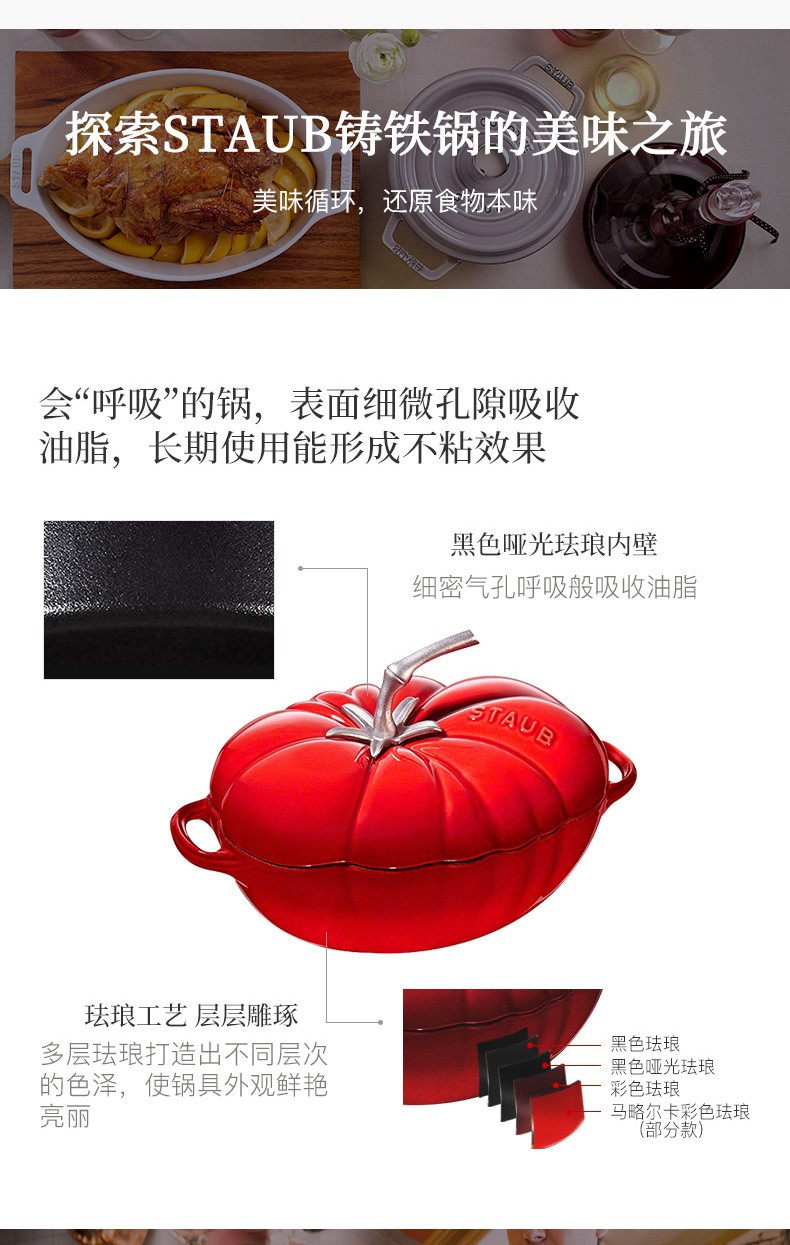 Staub enamel pot flat bottom uncoated cast iron pot soup pot double-ear stew pot food pot induction cooker tomato pot 25cm