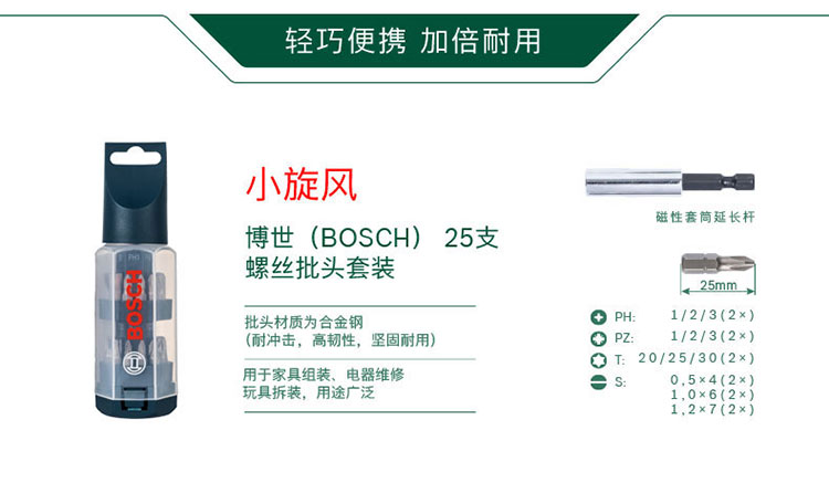 Bosch Bosch screwdriver set made of alloy steel for home use with magnetic extension rod 25 pieces small whirlwind