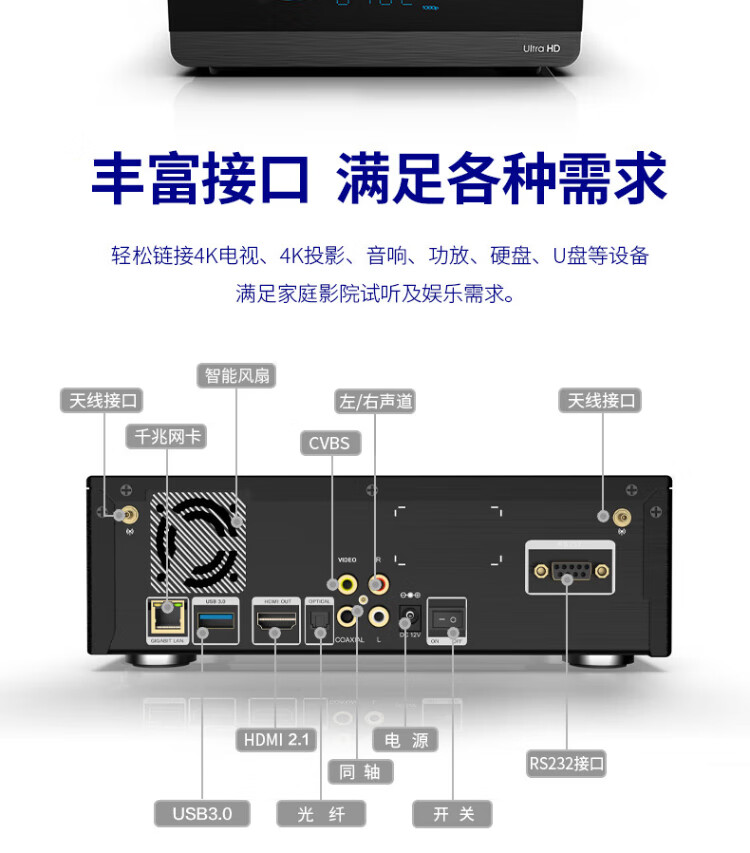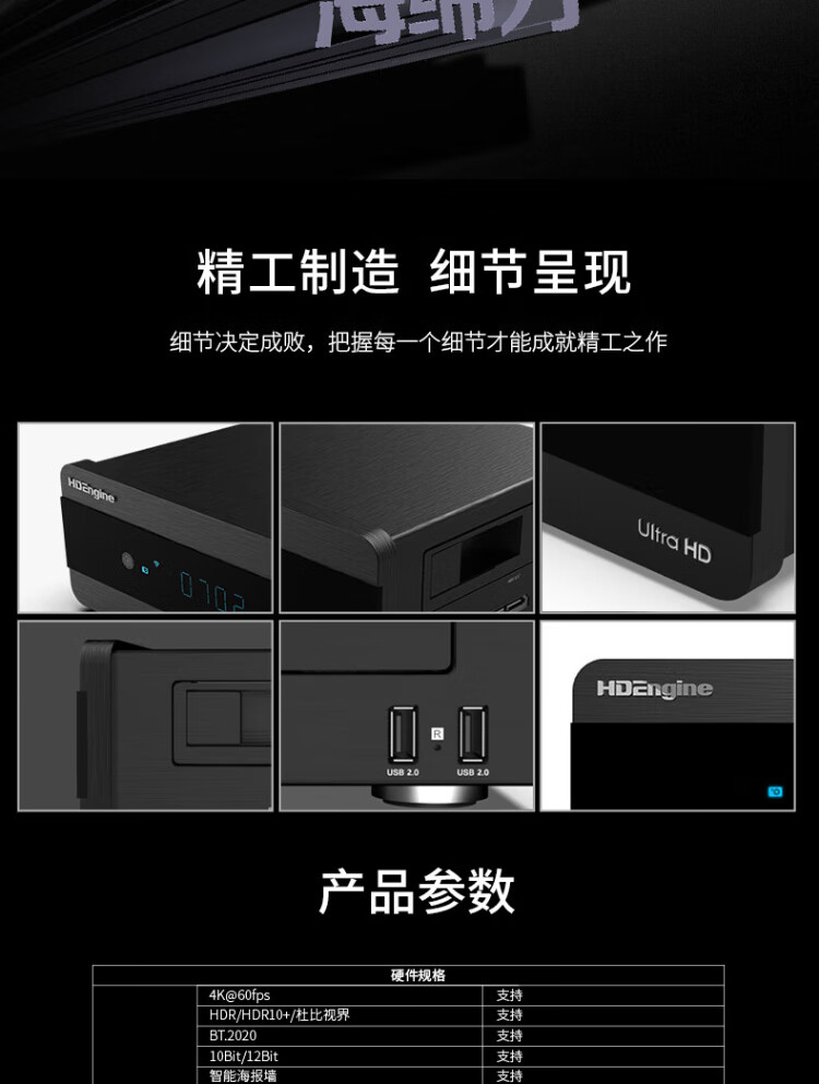 HDEngine (海缔力)MD2000高端智能3D4K播放机蓝光硬盘播放机网络影视 高端智能旗舰+4T硬盘