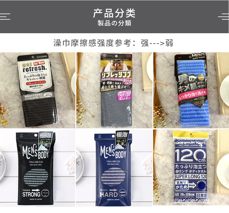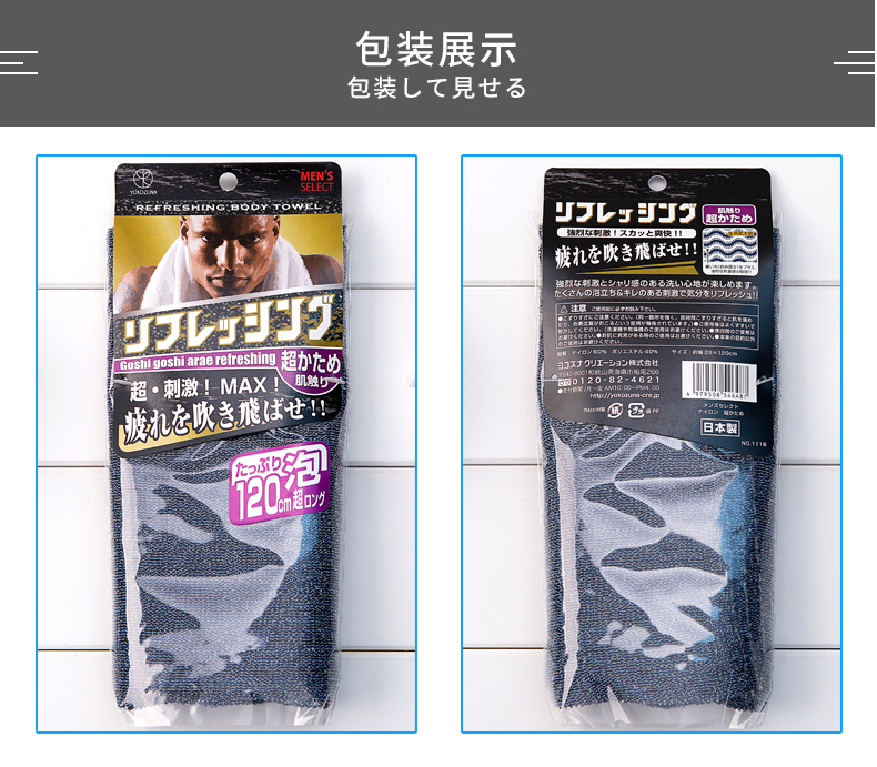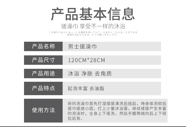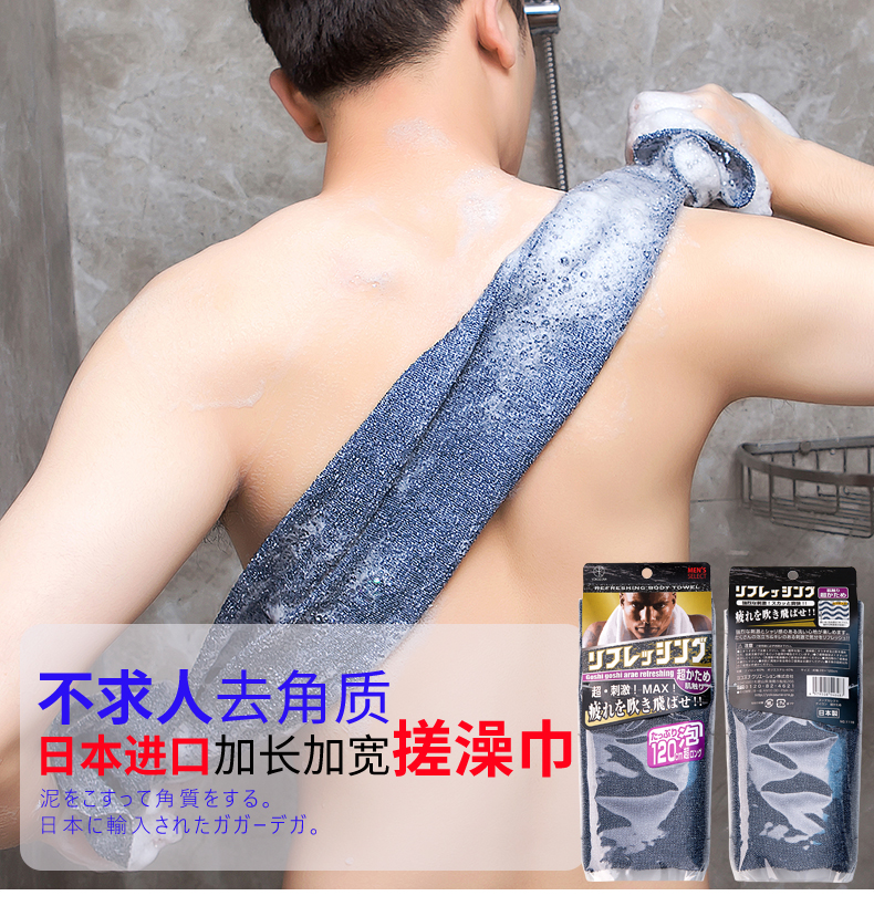 Qingyou Japanese imported men's bath towel, long strip for back rubbing and exfoliation, strong nylon polyester bath towel for men, QYK-056 bubble standing thorn 120CM