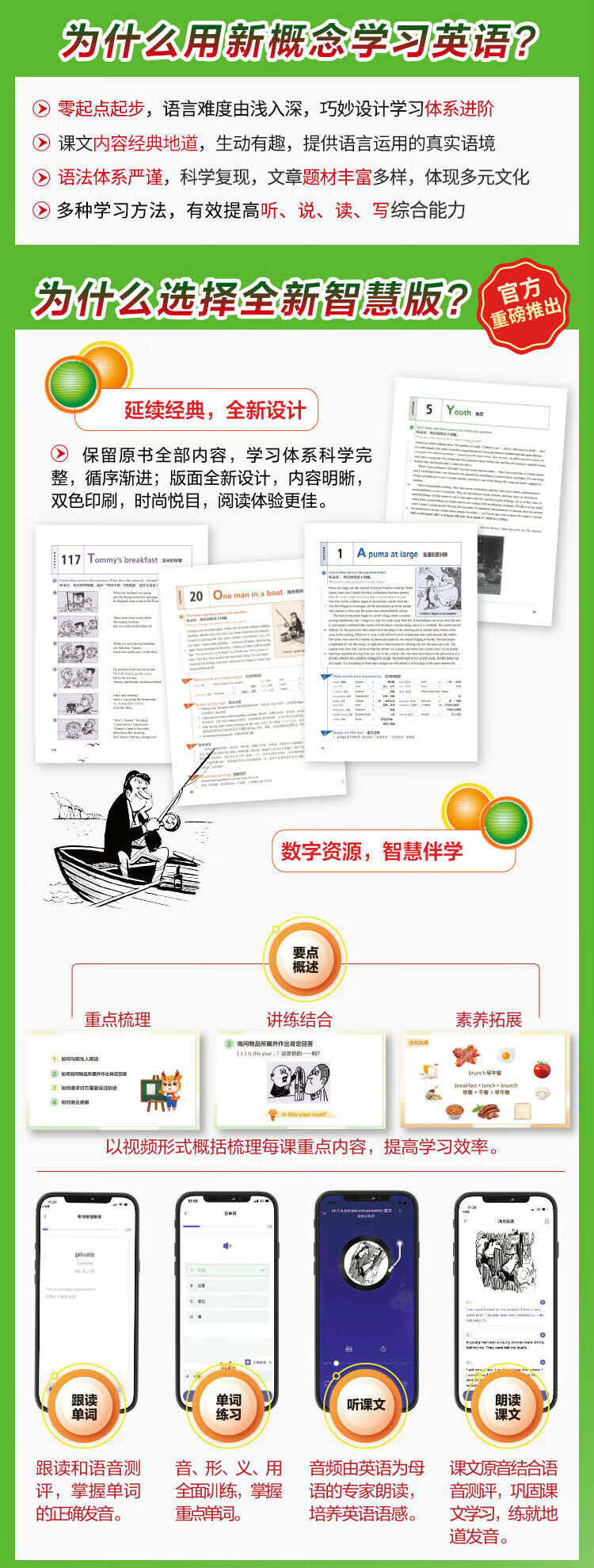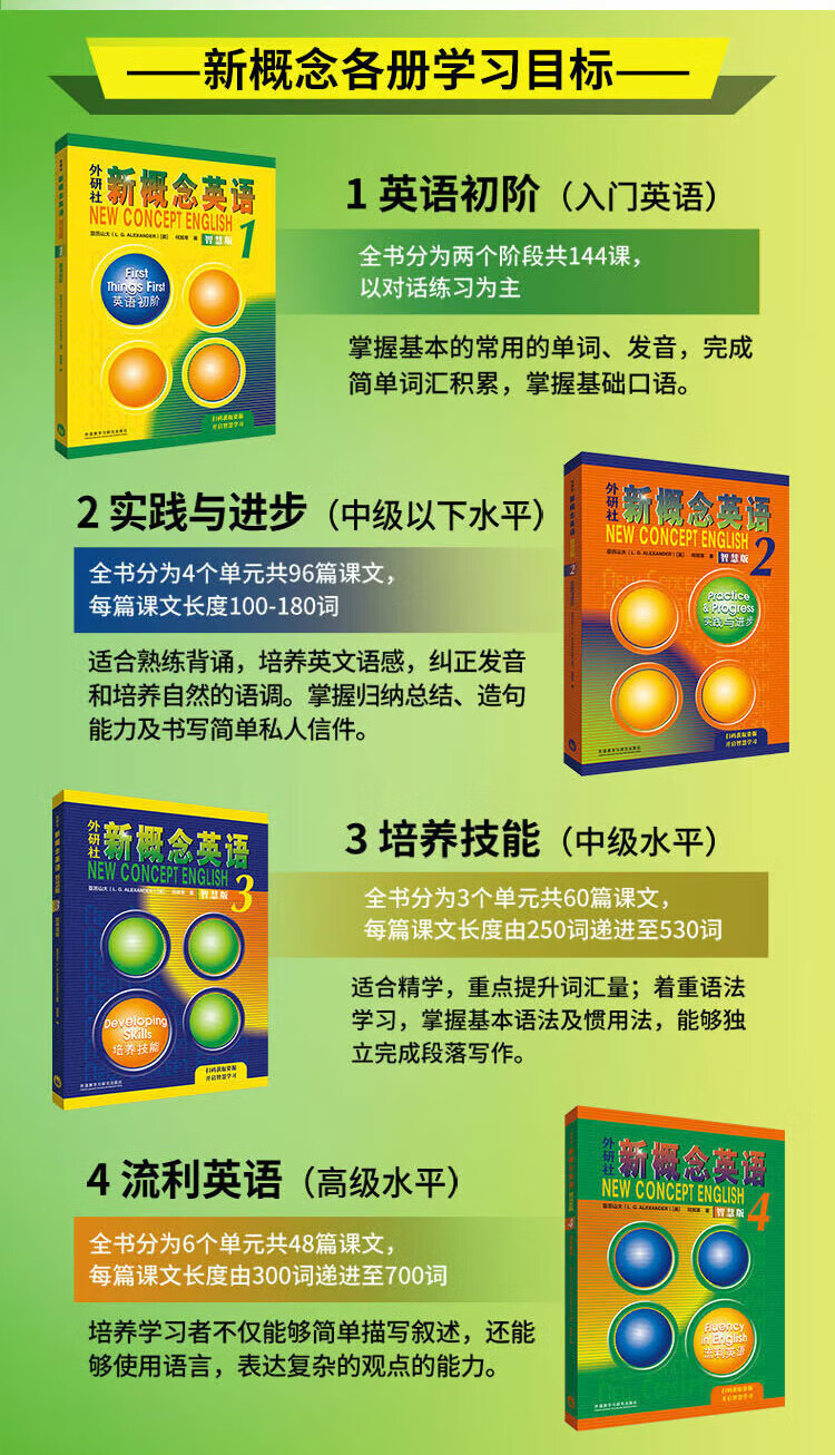 Xinhua Bookstore New Concept English 1-4, 8 volumes, student book (including audio) + exercise book, smart upgraded version, Longman Foreign Language Learning Textbook