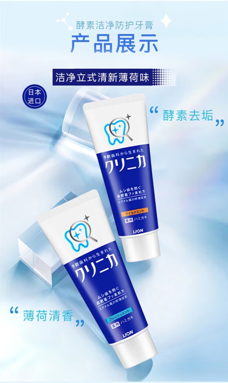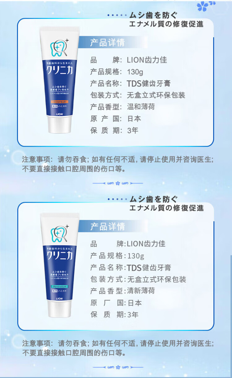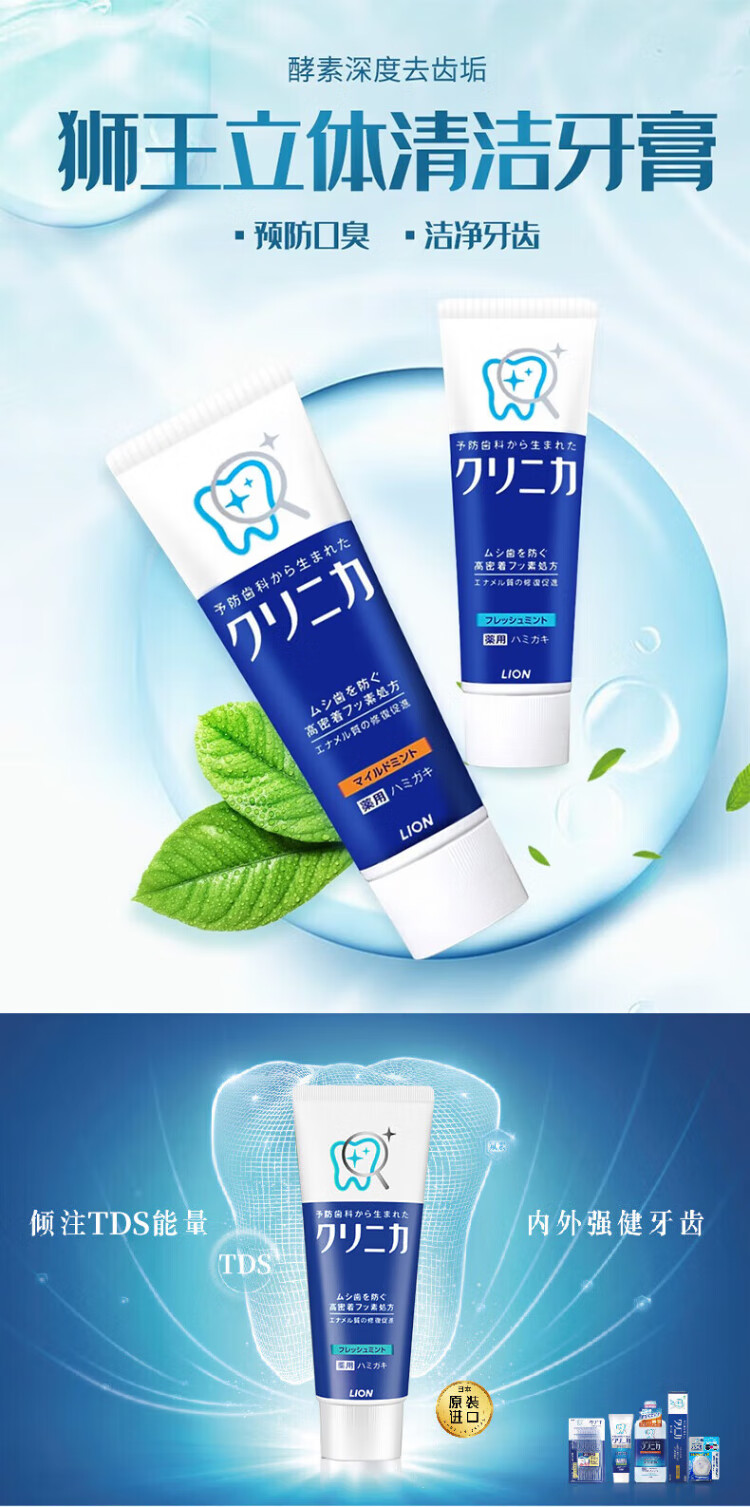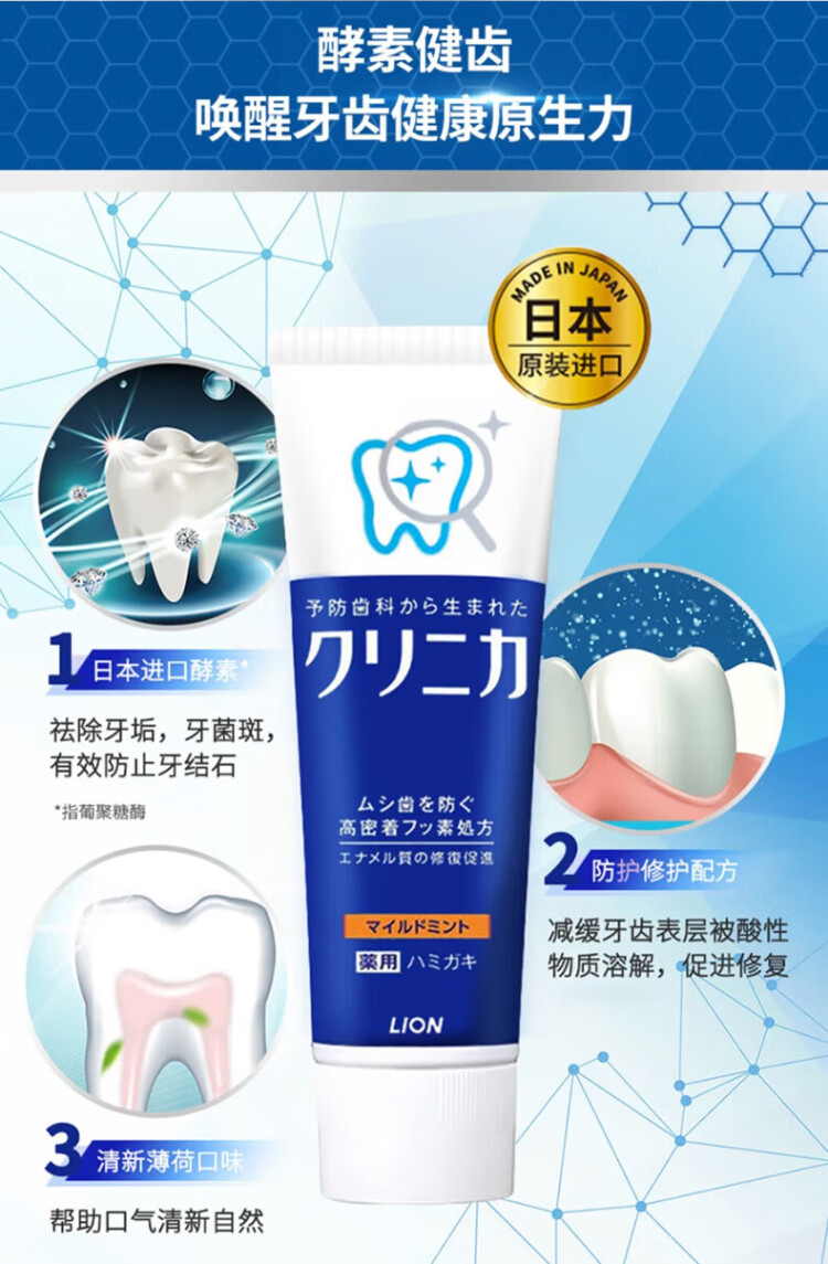 Lion toothpaste classic big blue tube cleans and strengthens teeth, prevents cavities, solidifies teeth, resists sugar enzymes, mild mint flavor 130g