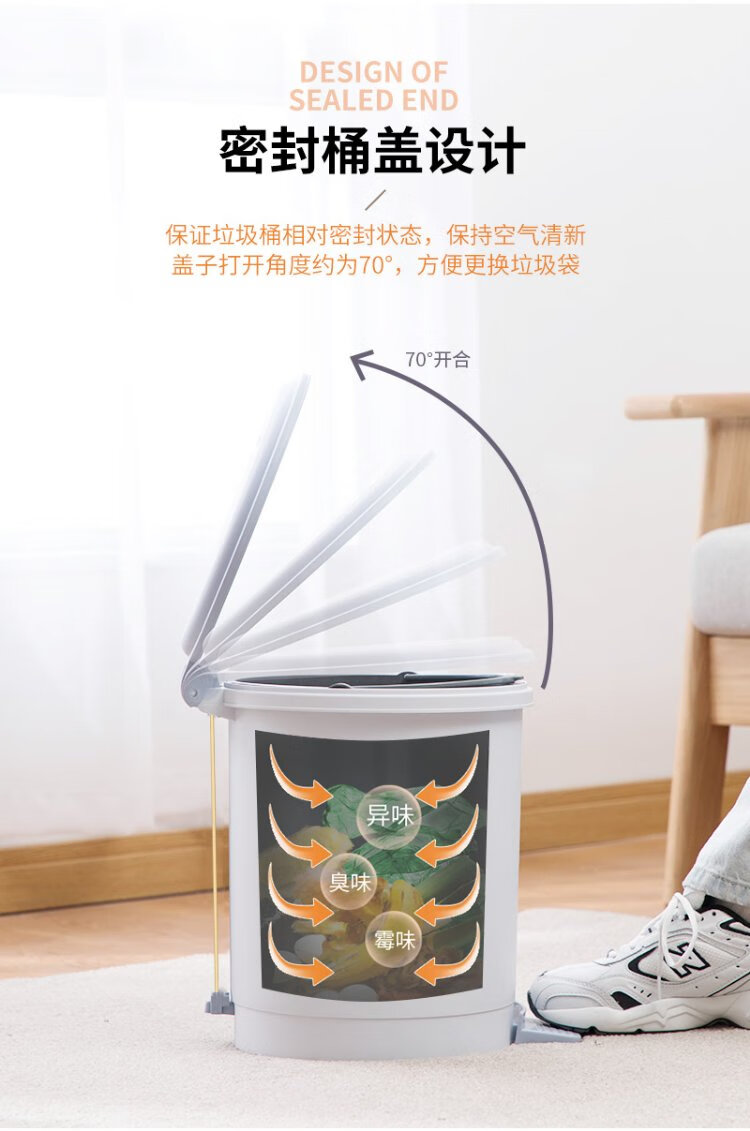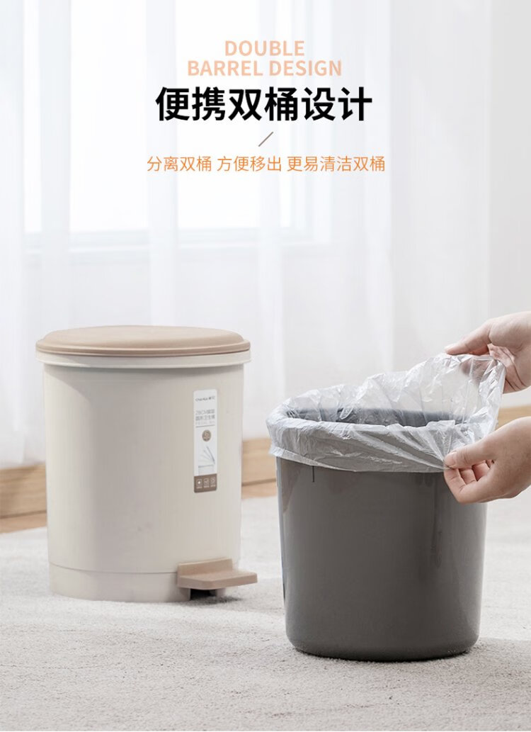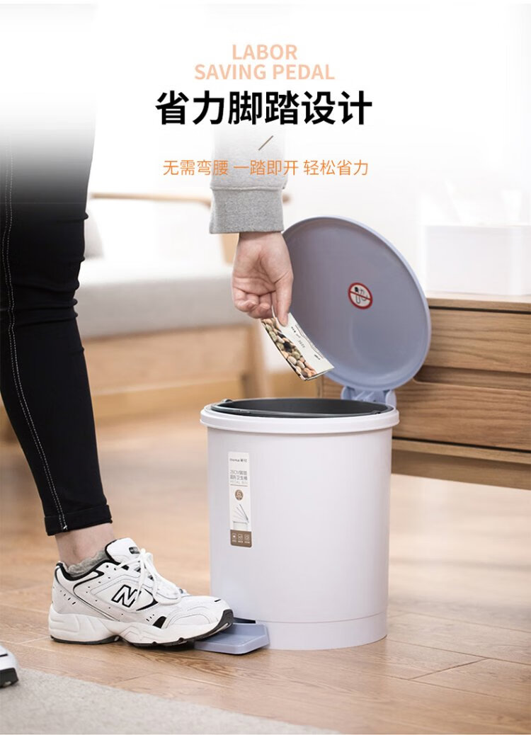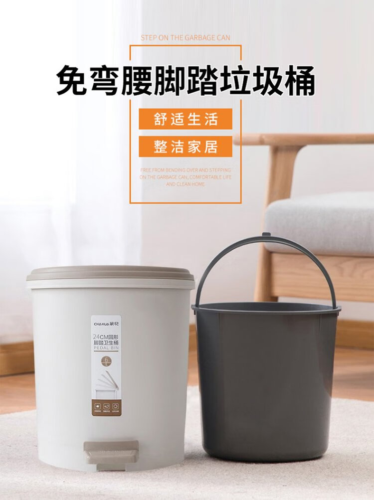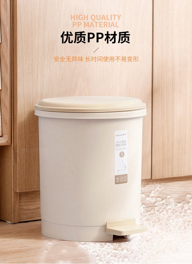 CHAHUA Camellia Foot Trash Can 6L with Cover Home Kitchen Office Plastic Cleaning Round Living Room Cleaning Bucket
