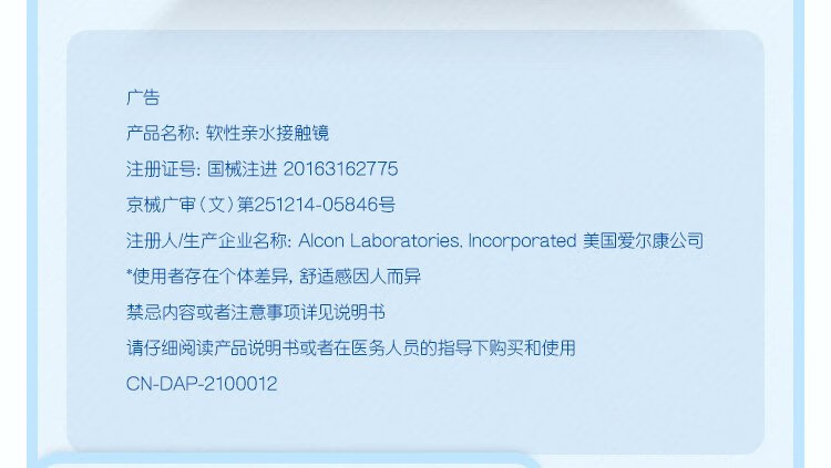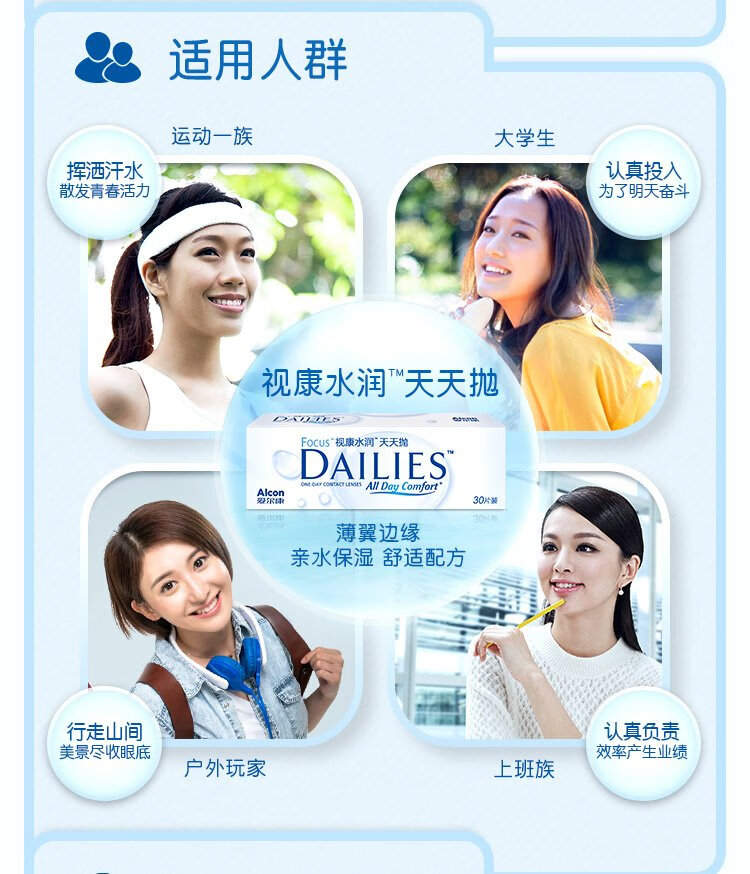 Alcon Hydrating Daily Disposable Contact Lenses Daily Disposable Moisturizing Imported 30 Pieces 100 Degrees