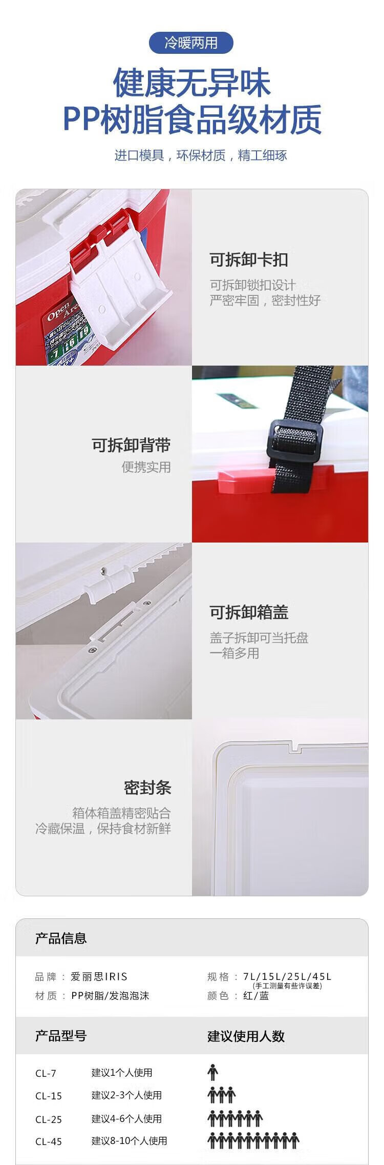 IRIS CL-15 car insulated cooler, about 15 liters, outdoor picnic cold and warm box, blue