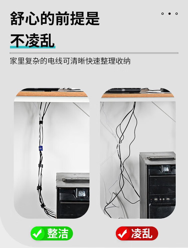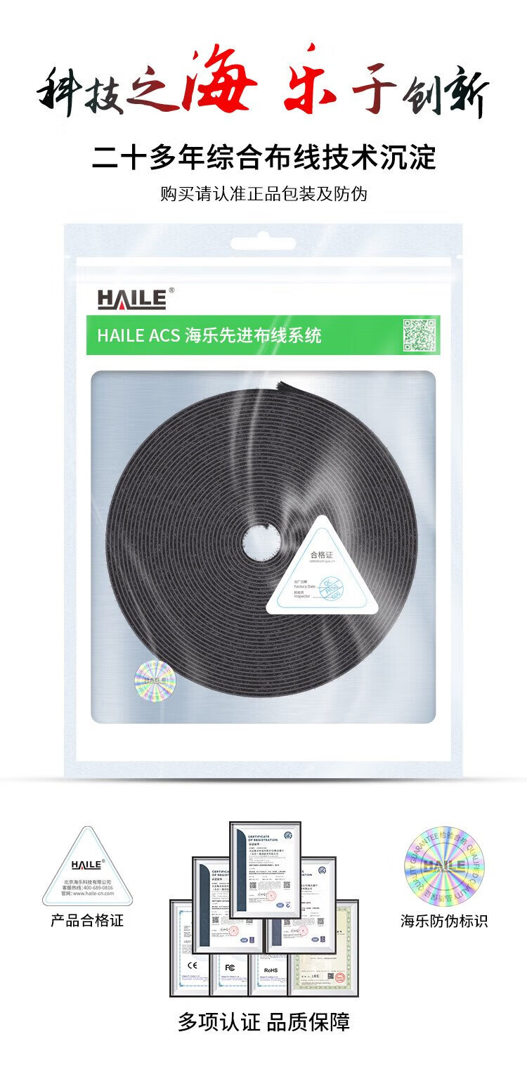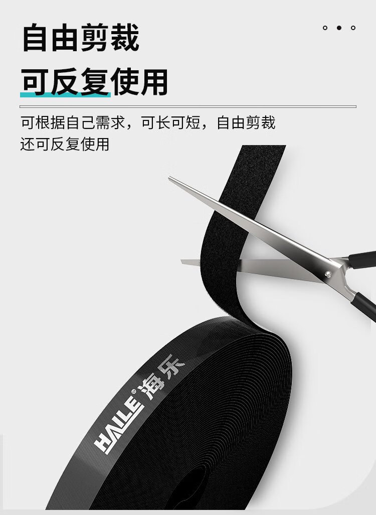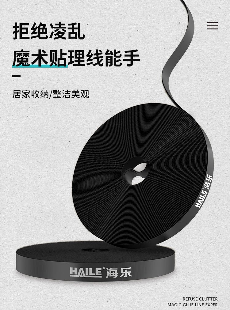 HAILE computer cable management tape 5 meters Velcro cable storage fixed arrangement winding tape cable organizer power cord tie tape binding tape black ZD-1H-5M