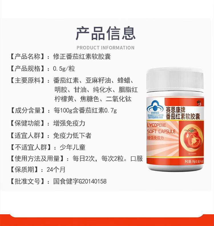 Correction Lycopene Soft Capsule Enhances Immunity Men's Health Care 0.5g*60 Capsules