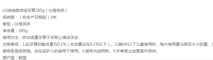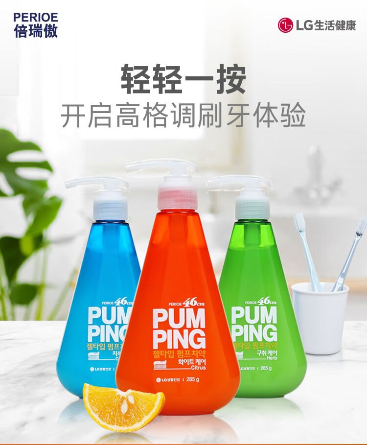 Bamboo salt LG Paibin push-type toothpaste 285g*1 bottle Qincheng Liangyan refreshing taste reduces tooth stains and cleans the mouth