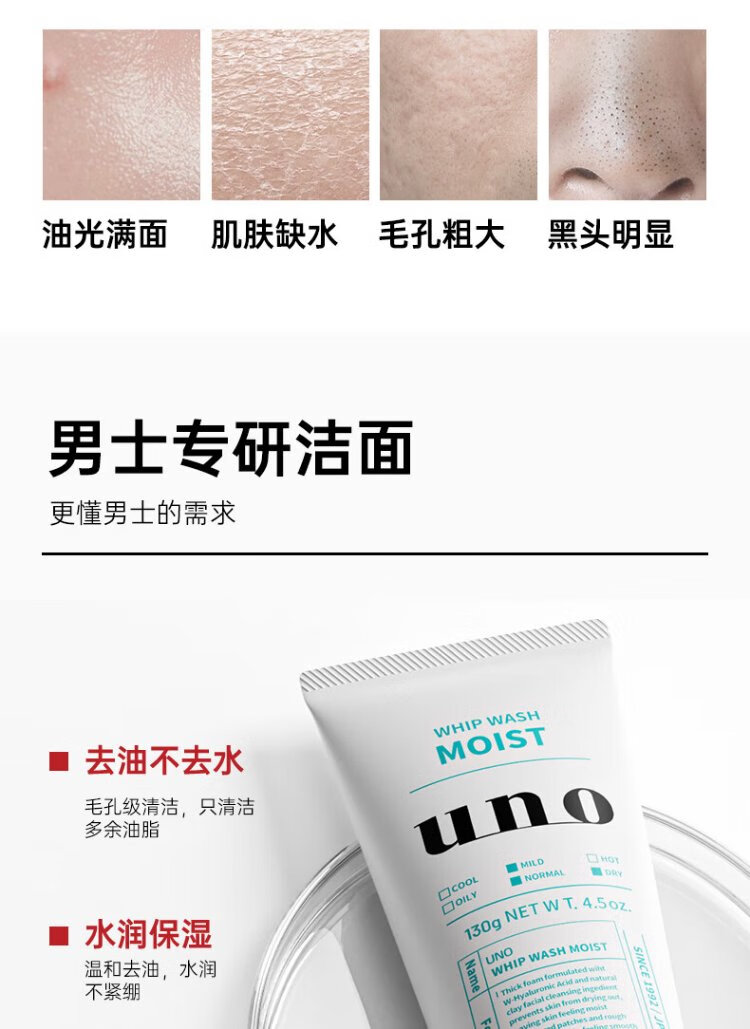 UNO men's facial cleanser 130g facial degreasing moisturizing foam cleanser skin care products Shiseido imported birthday gift