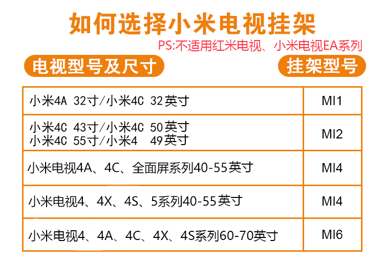 Haifulian Universal Mount for Xiaomi TV Bracket TV Wall Mount MI6 (4A\4C\4S\4) 60-75 inches thickened version