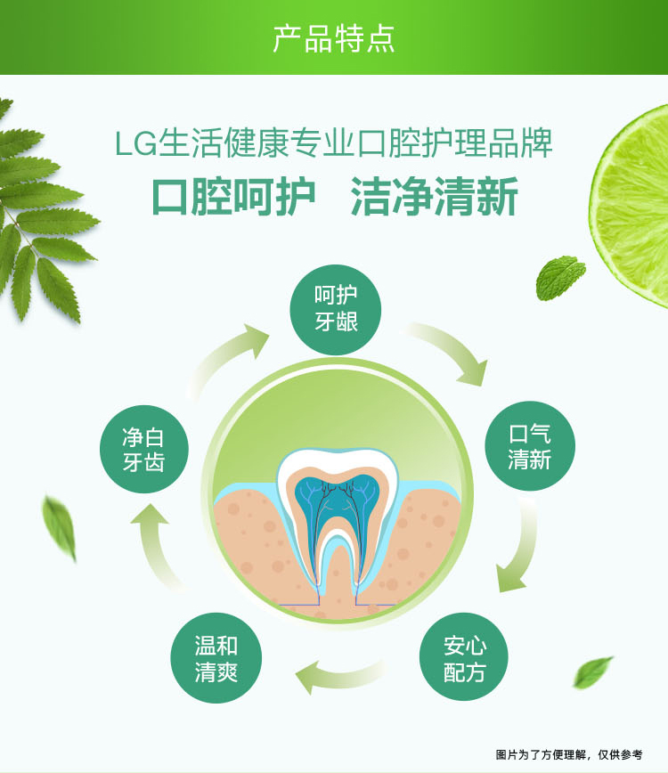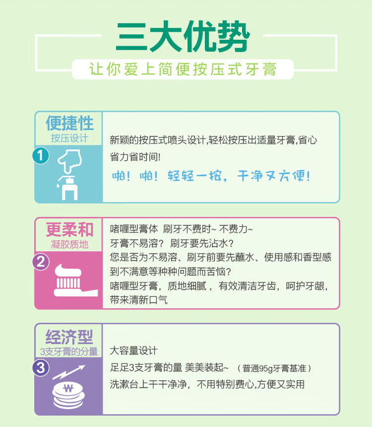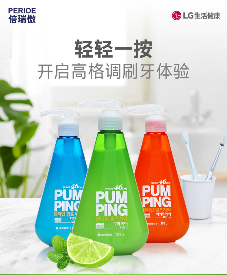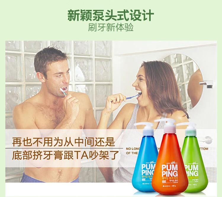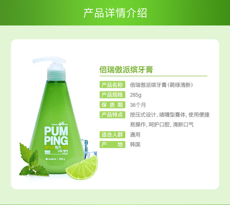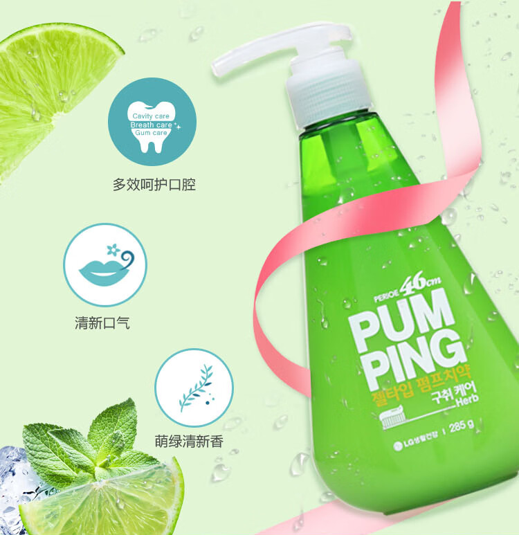 Bamboo salt LG Paibin push-on toothpaste 285g*1 bottle cute green fresh and refreshing taste reduces tooth stains and cleans the mouth