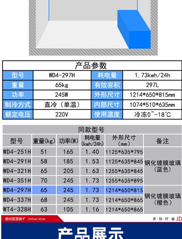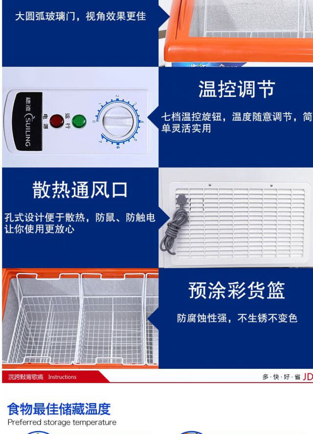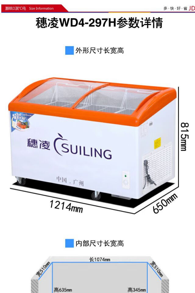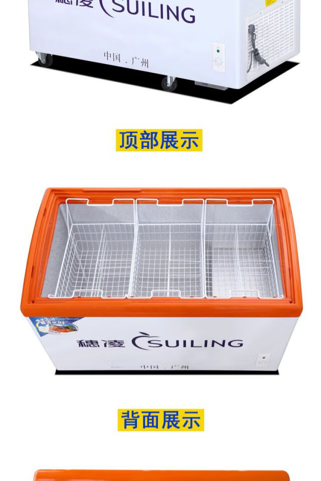 Suiling (SUILING) WD4-297H commercial horizontal freezer curved glass door display freezer refrigerator single temperature ice cream freezer 297 liters