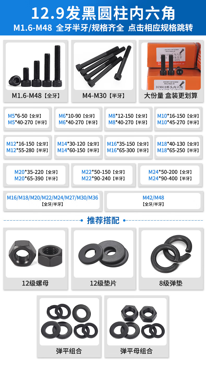 Jinggong (JINGGONG) 12.9 grade hexagon socket screws, high-strength cylindrical head screws, cup head bolts, full-thread high-strength national standard M6*25 (20 pcs)