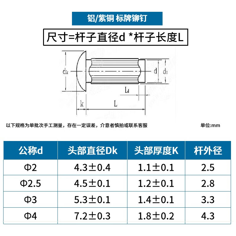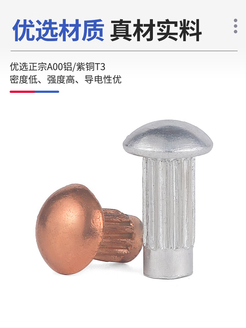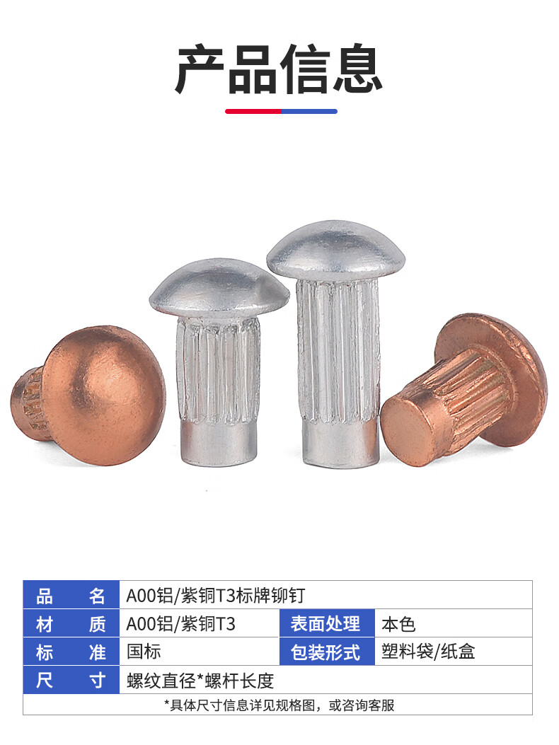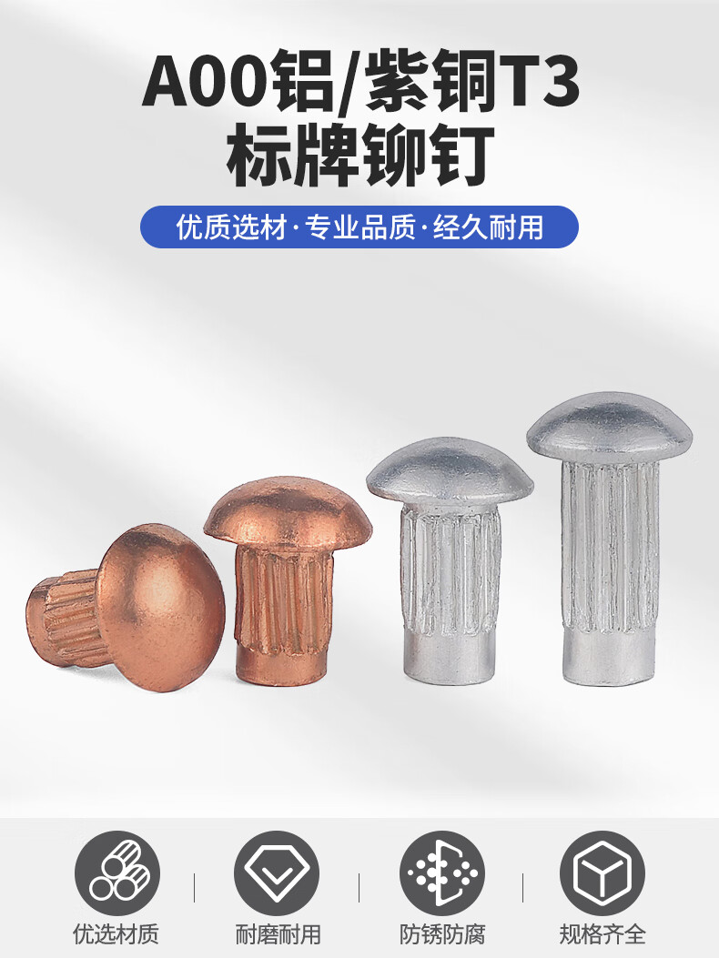 Jinggong aluminum sign rivets copper nameplate rivets trademark rivets solid knurled rivets twill aluminum rivets GB827 copper 2*4 100 pieces