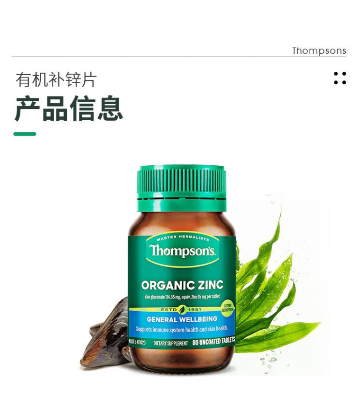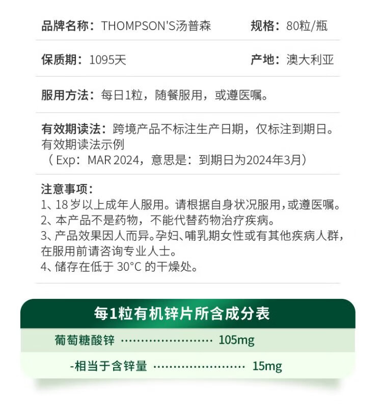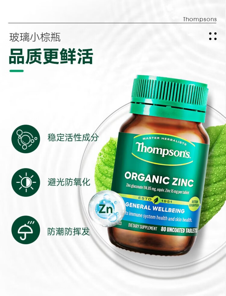 Thompson's high-concentration zinc supplement tablets 80 capsules/bottle Zinc gluconate tablets for adults 105mg to improve immunity, prepare for pregnancy and nourish sperm