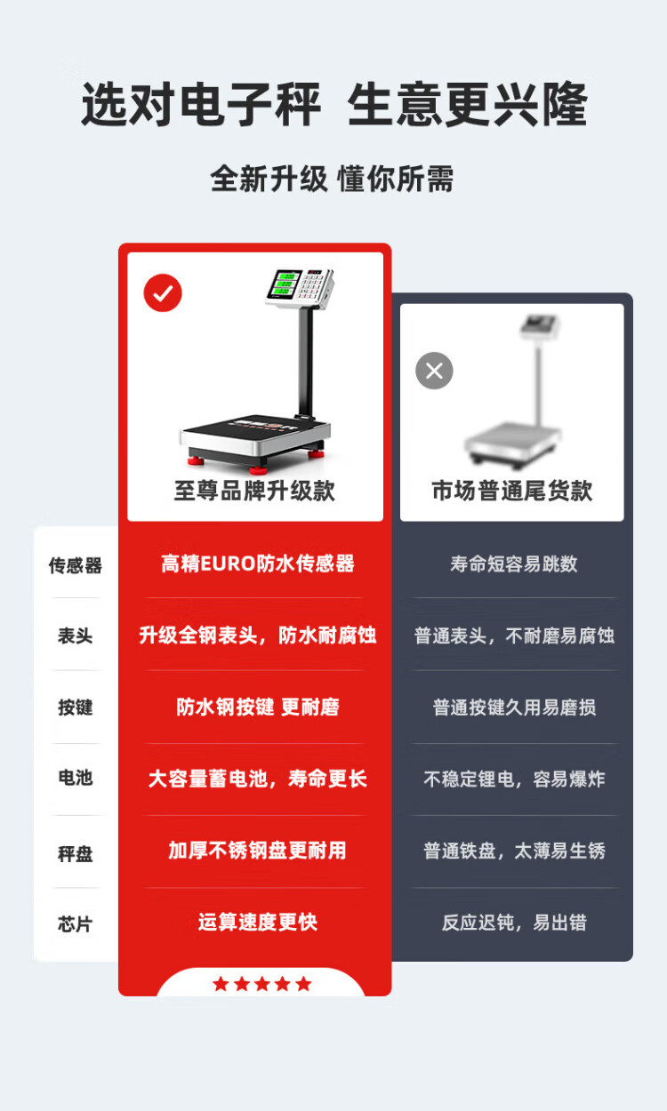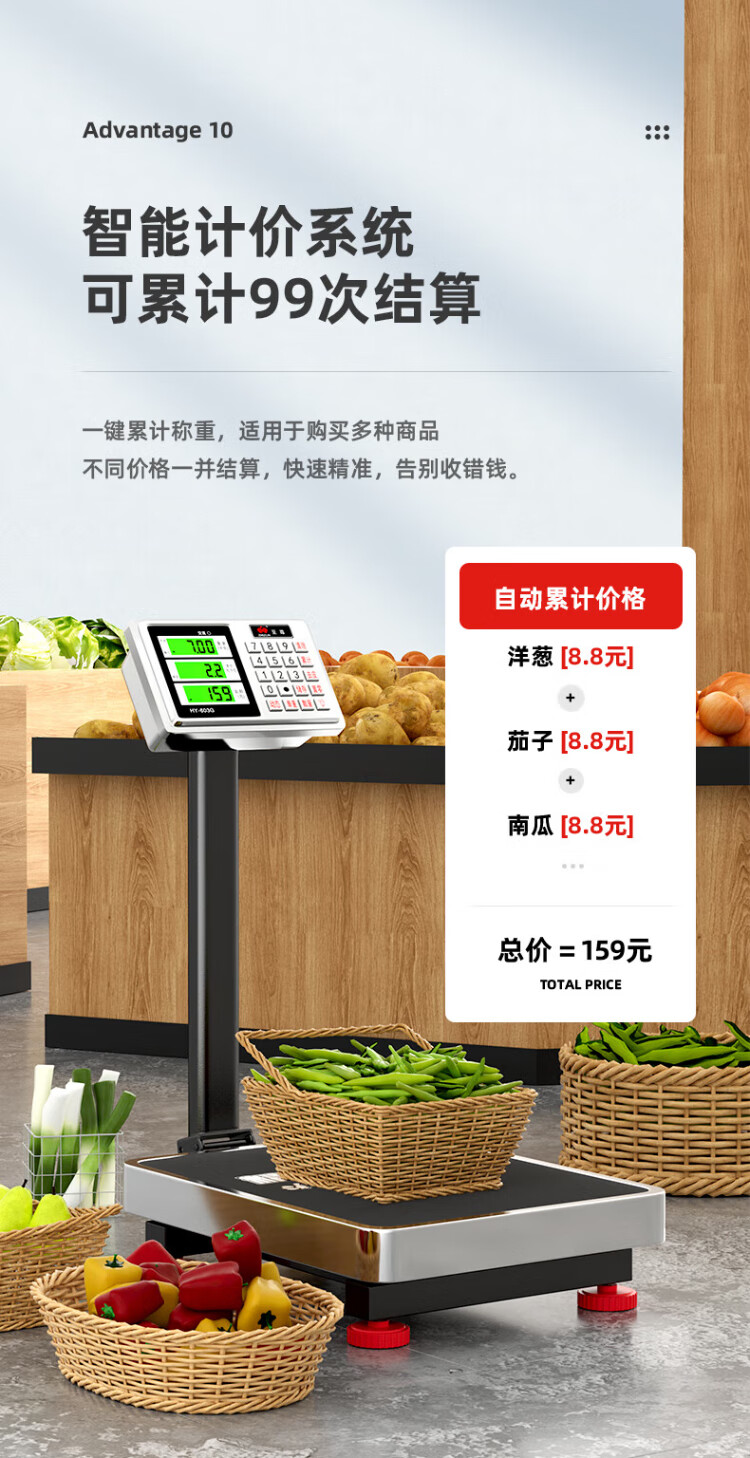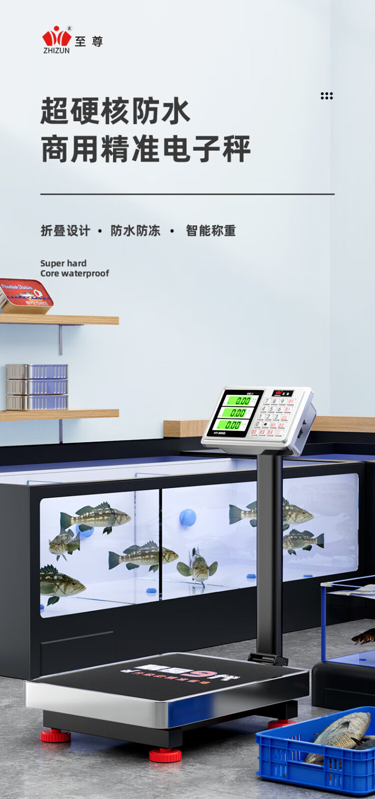 ZHIZUN electronic scale for weighing goods, commercial platform scale for setting up stalls, electronic weighing floor scale, waterproof seafood aquatic product express scale, 150kg table top 31*41, the whole machine is rust-resistant and fully waterproof