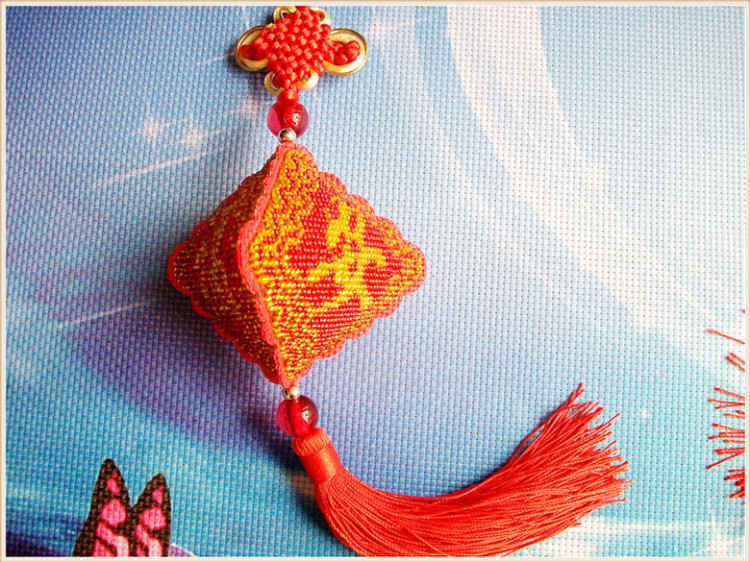 Laojieyuan 2026 new bead embroidery handmade embroidery car pendant cross stitch pendant safety charm car hanging precision printing (full bead embroidery) needs to be embroidered by yourself