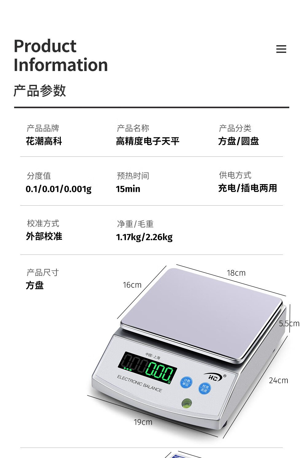 Huachao (HC) Electronic Balance Electronic Scale Laboratory Analytical Balance Gold Scale Jewelry Scale Round 1000g/0.01g
