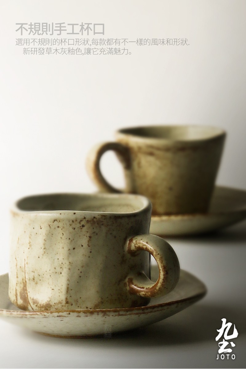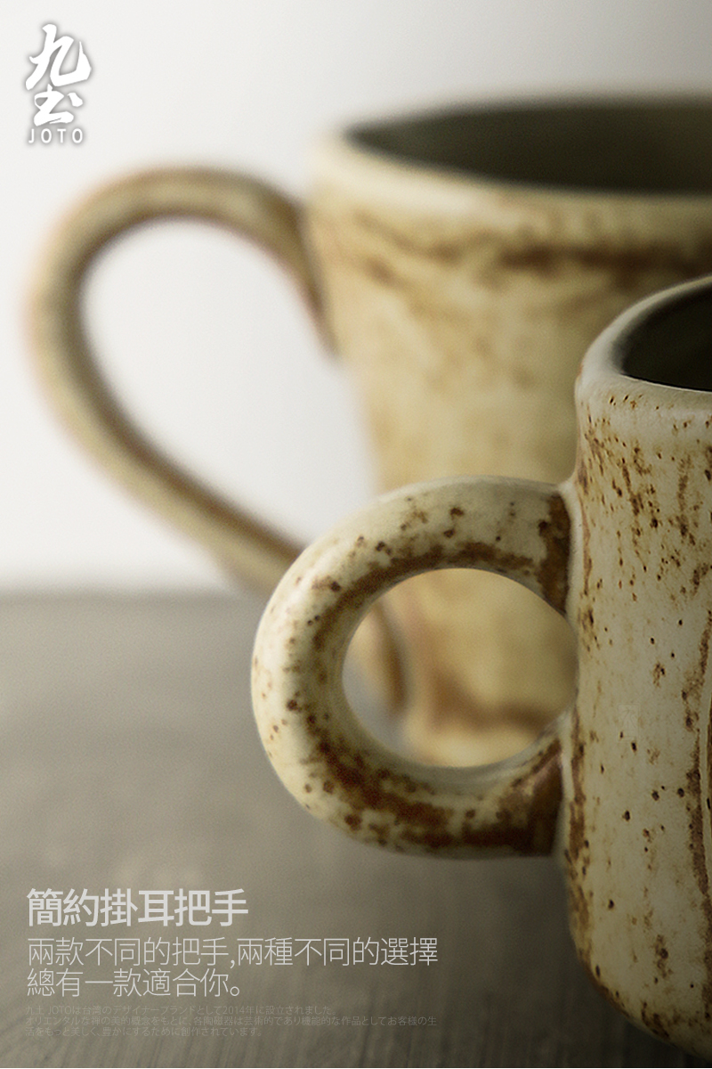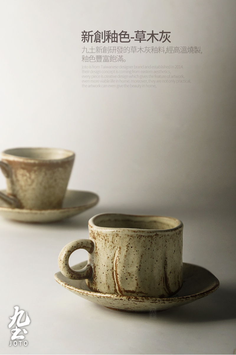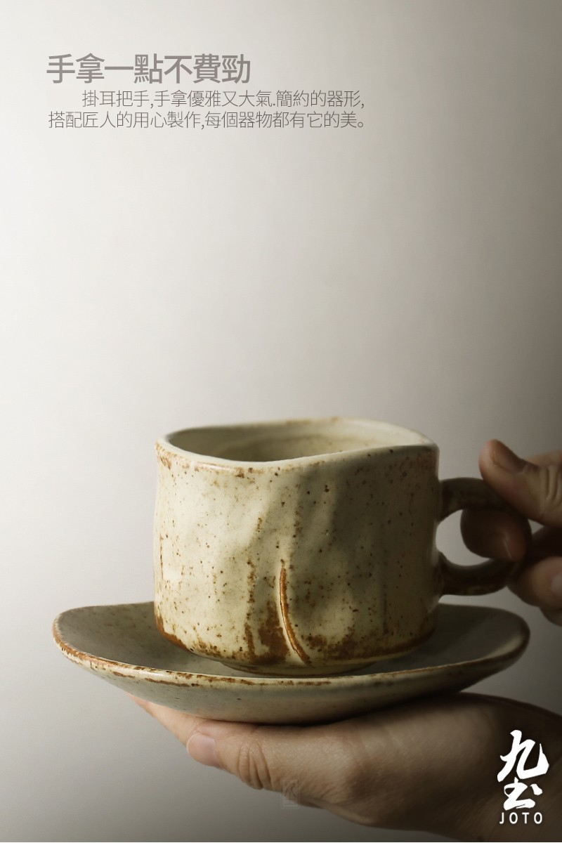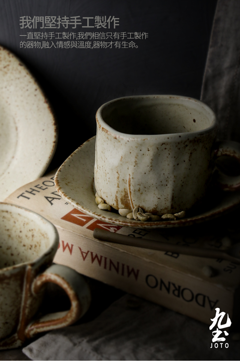 Jiutu handmade coffee cup ceramic couple cup and saucer set Japanese style coarse pottery coffee cup retro coffee set simple Italian style round ear handle