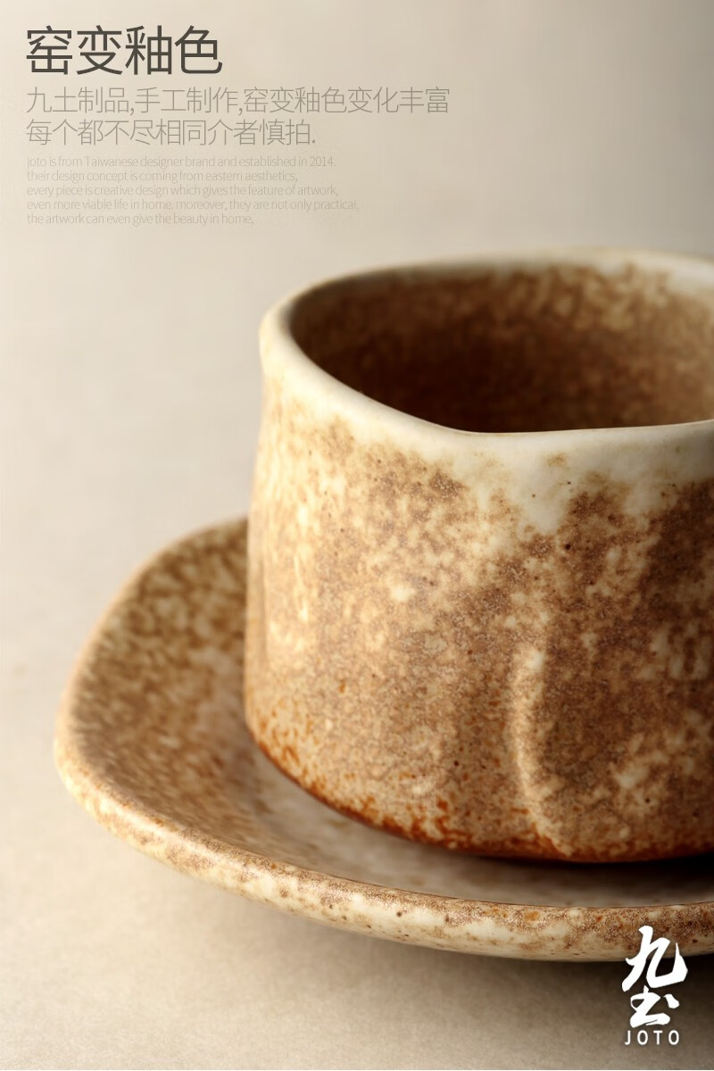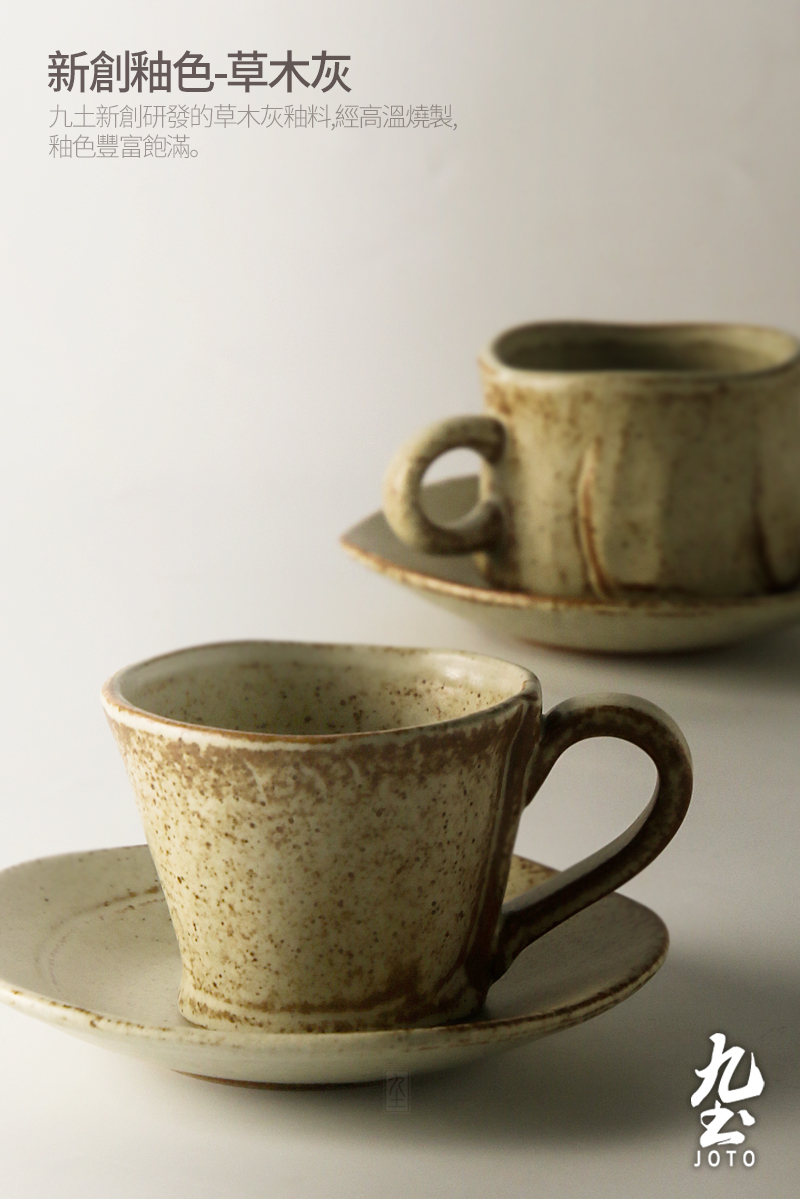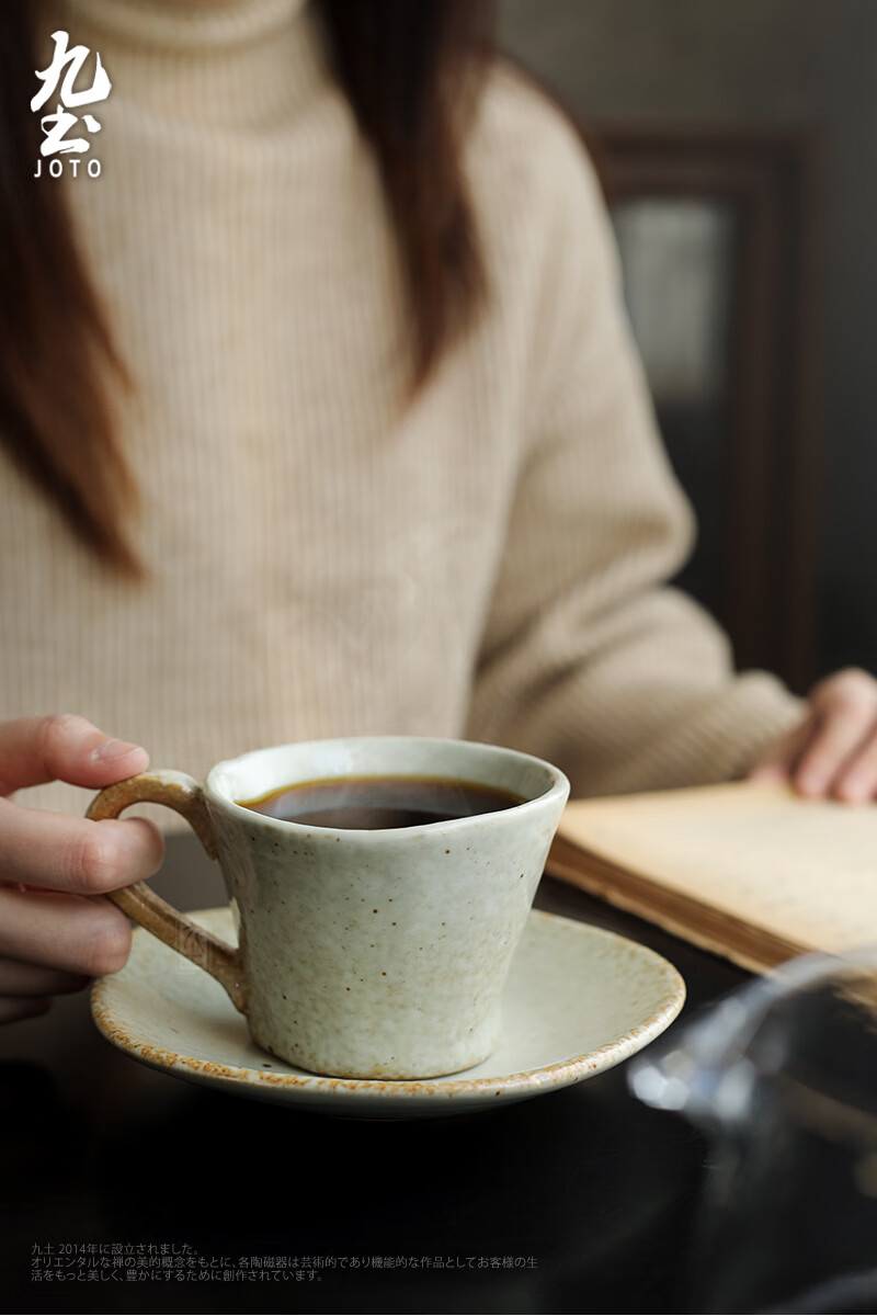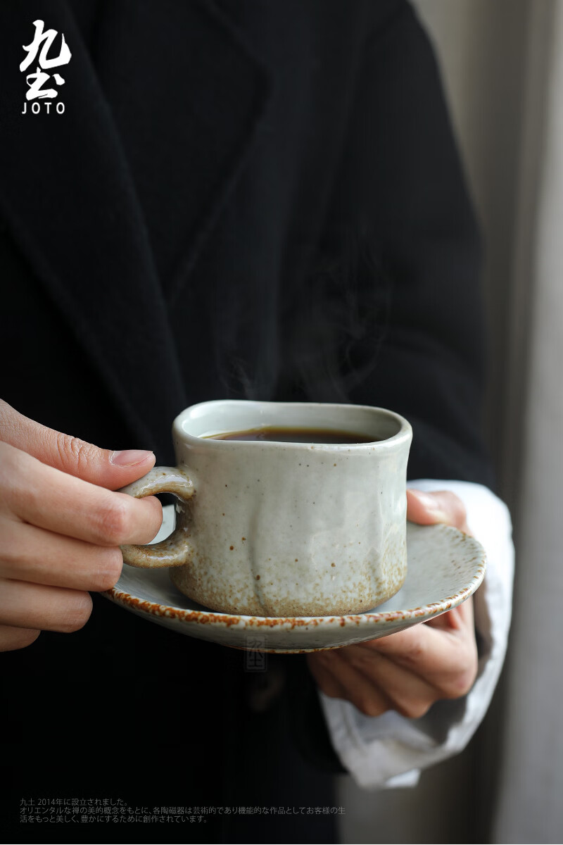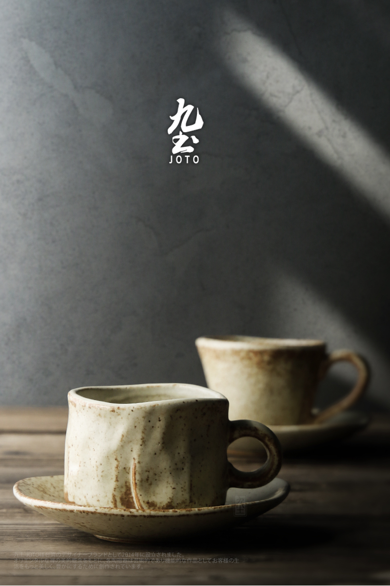 Jiutu handmade coffee cup ceramic couple cup and saucer set Japanese style coarse pottery coffee cup retro coffee set simple Italian style round ear handle
