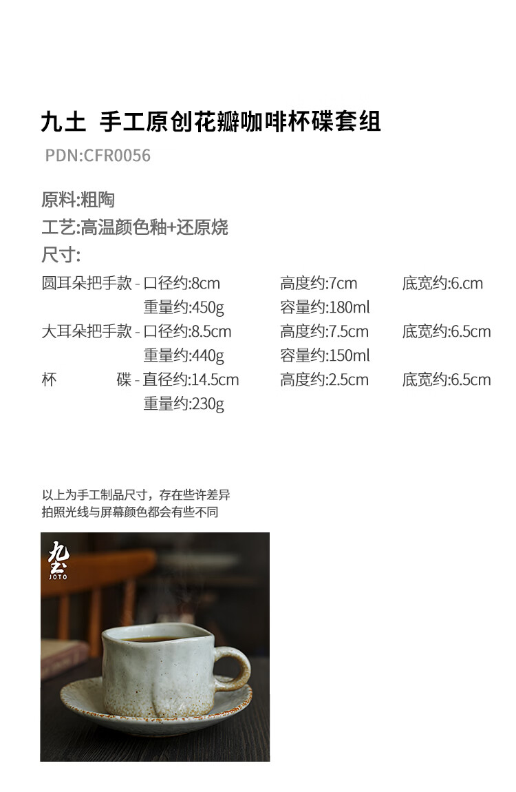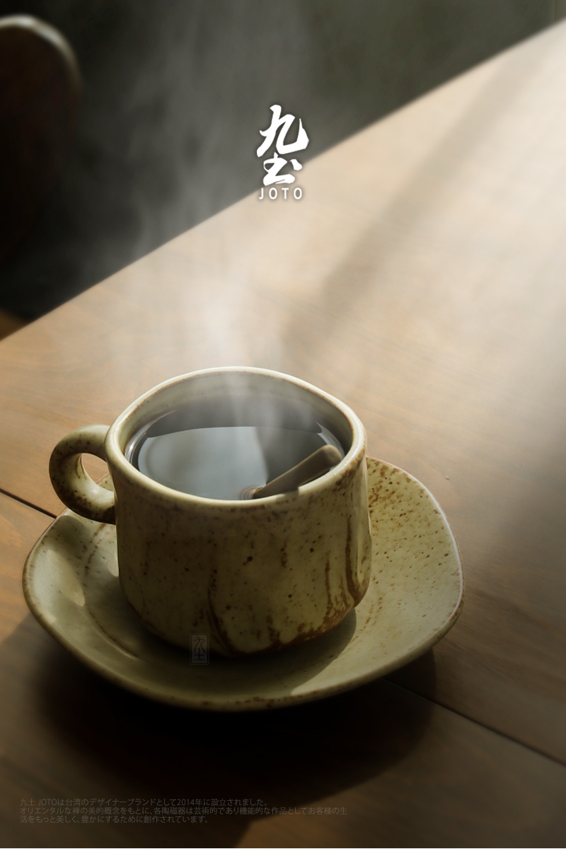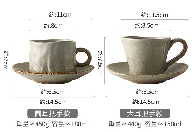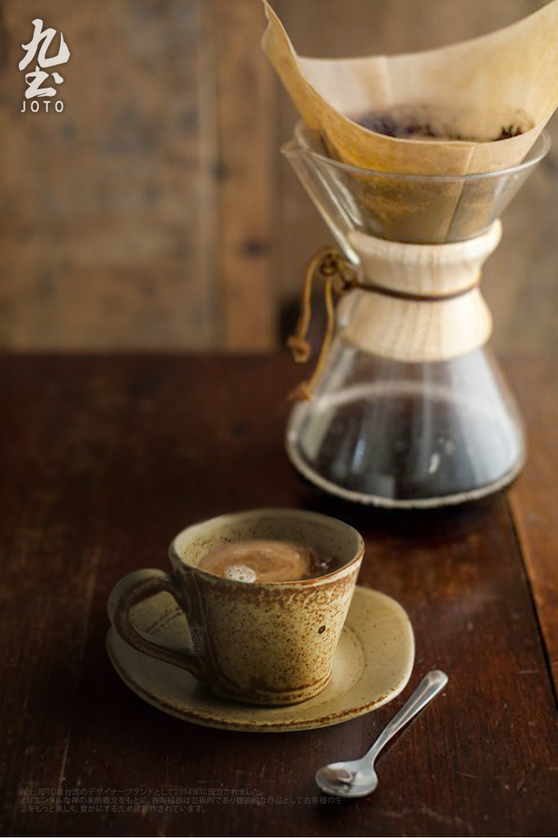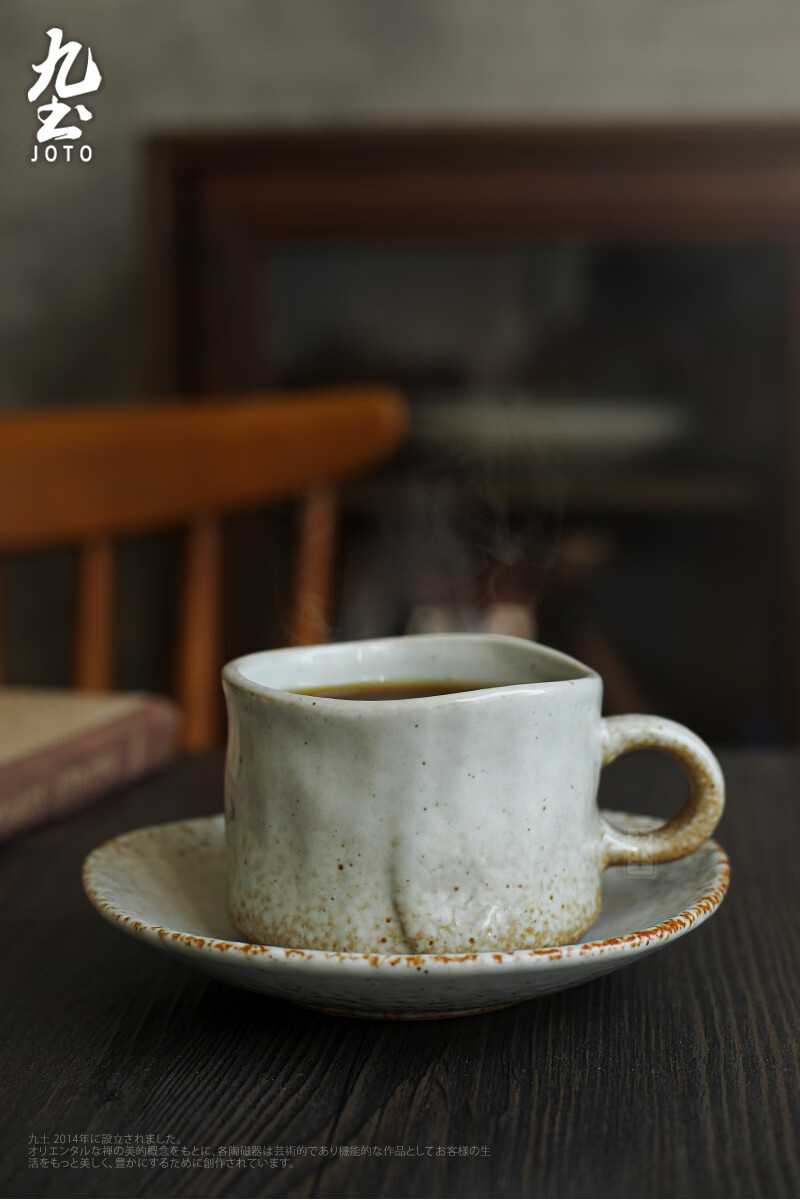 Jiutu handmade coffee cup ceramic couple cup and saucer set Japanese style coarse pottery coffee cup retro coffee set simple Italian style round ear handle