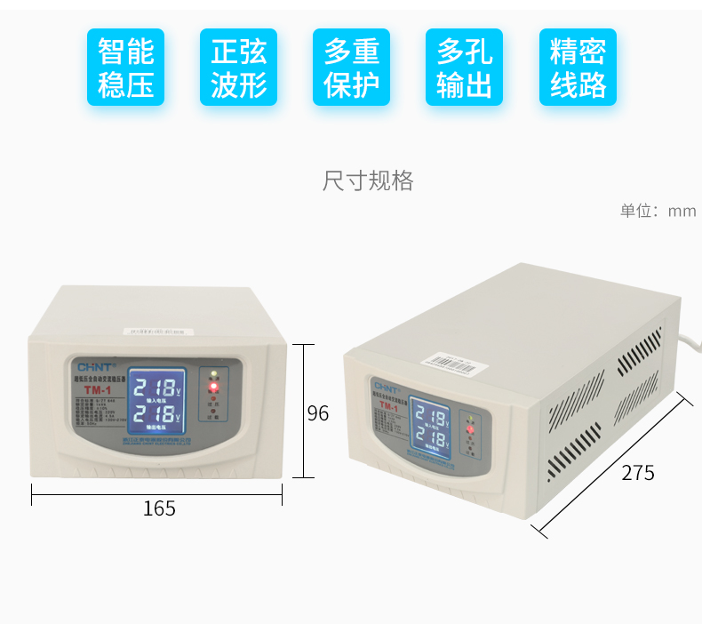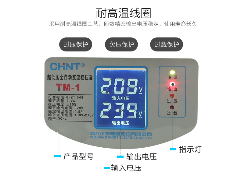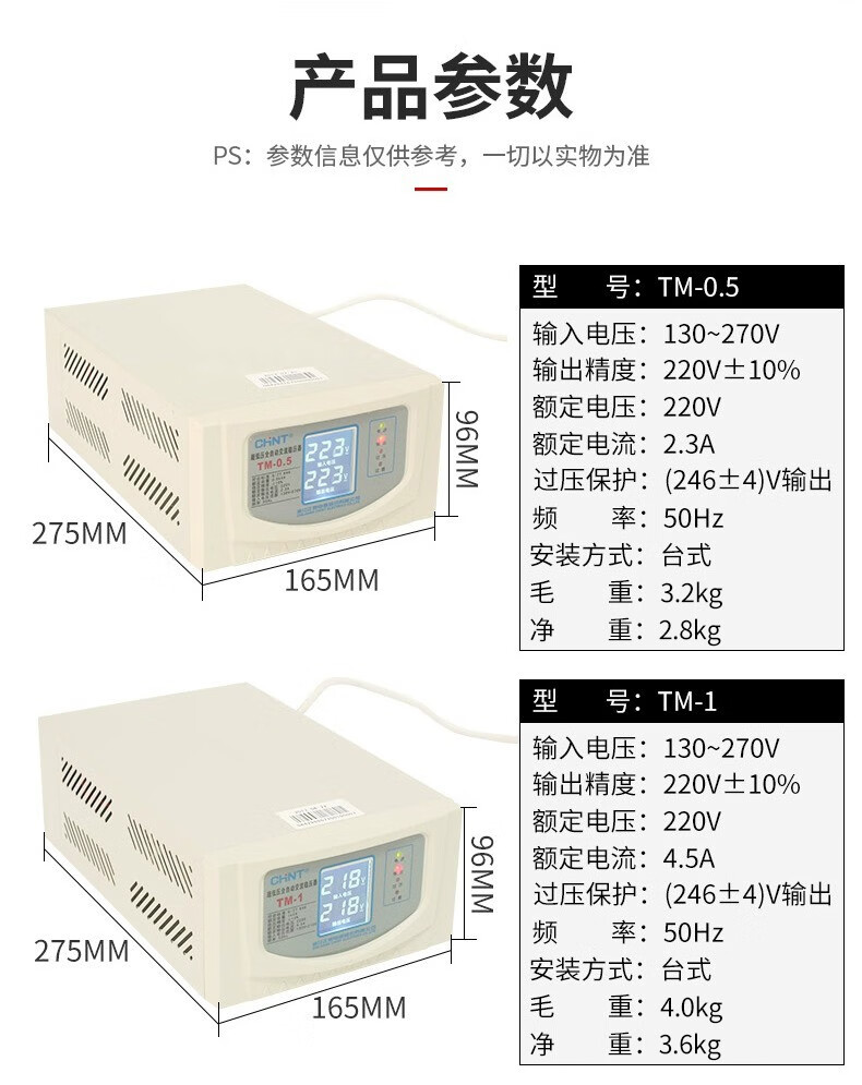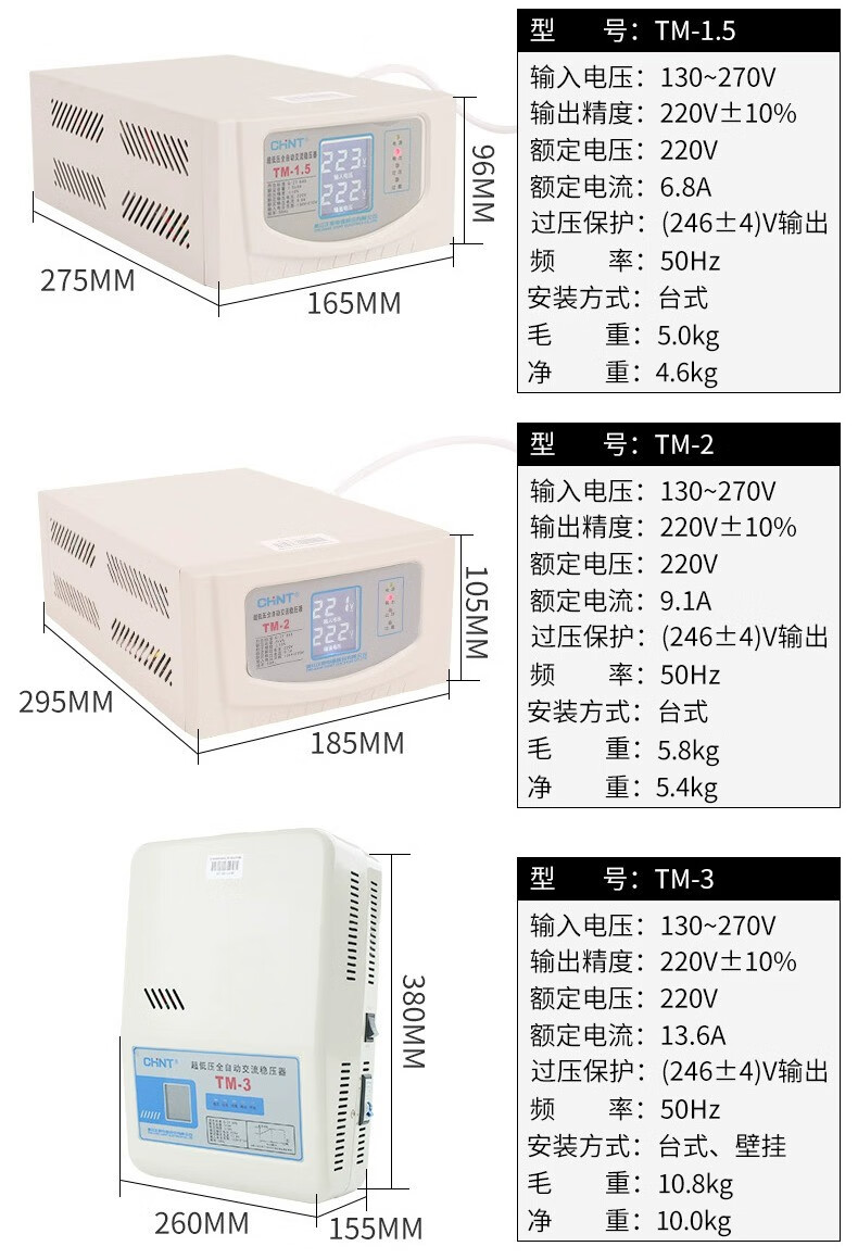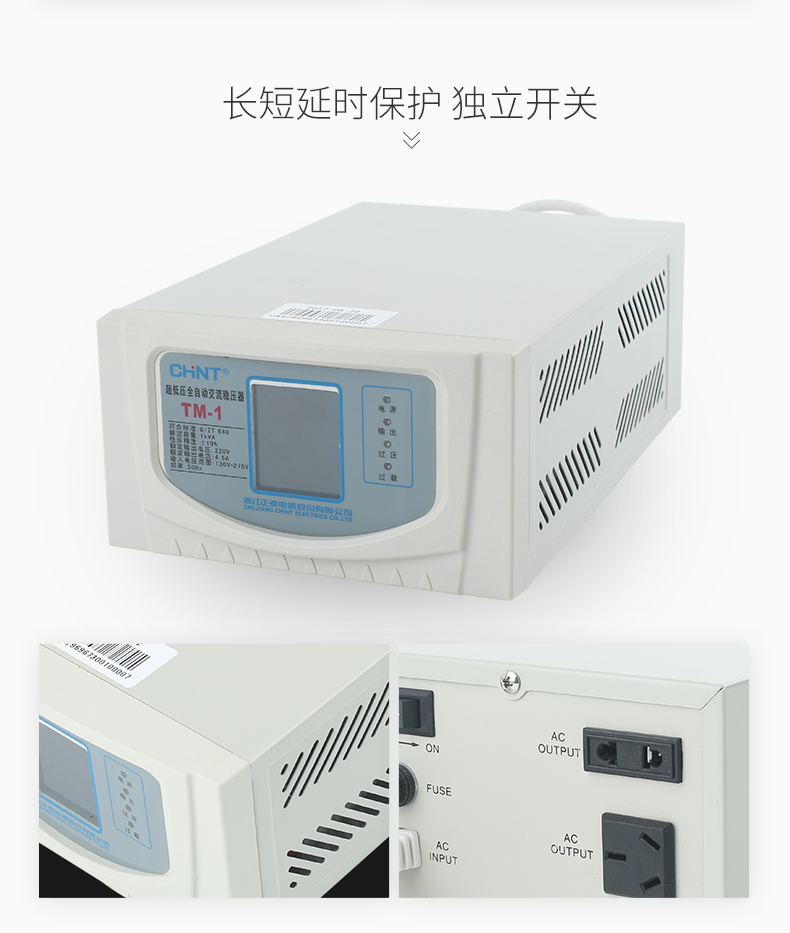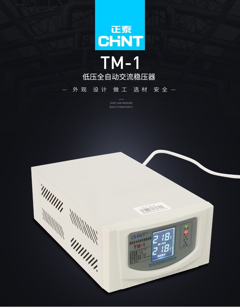Chint (CHNT) ultra-low voltage fully automatic AC voltage regulator 220v single-phase voltage regulator TM-1kw 1000w household power supply voltage regulator