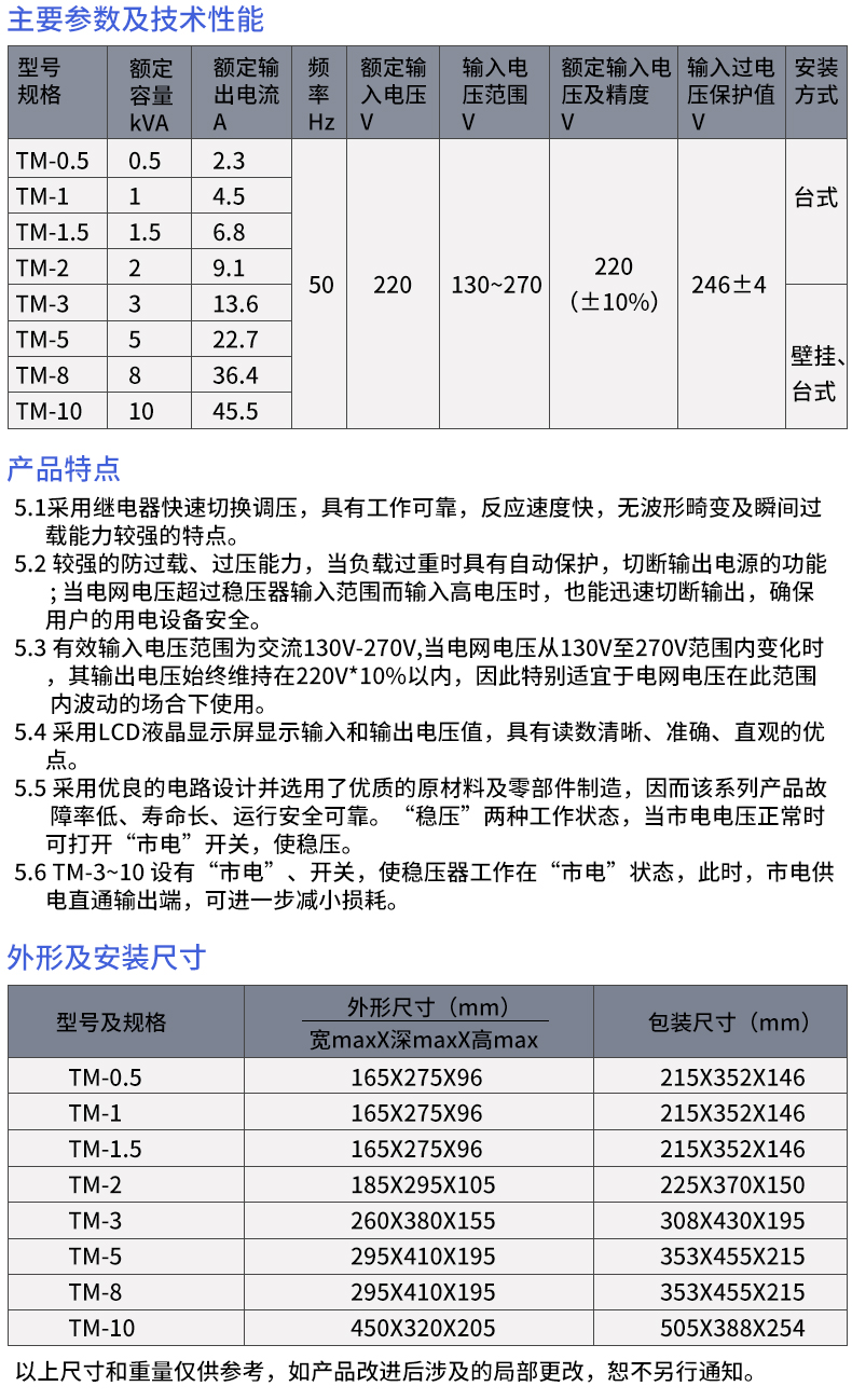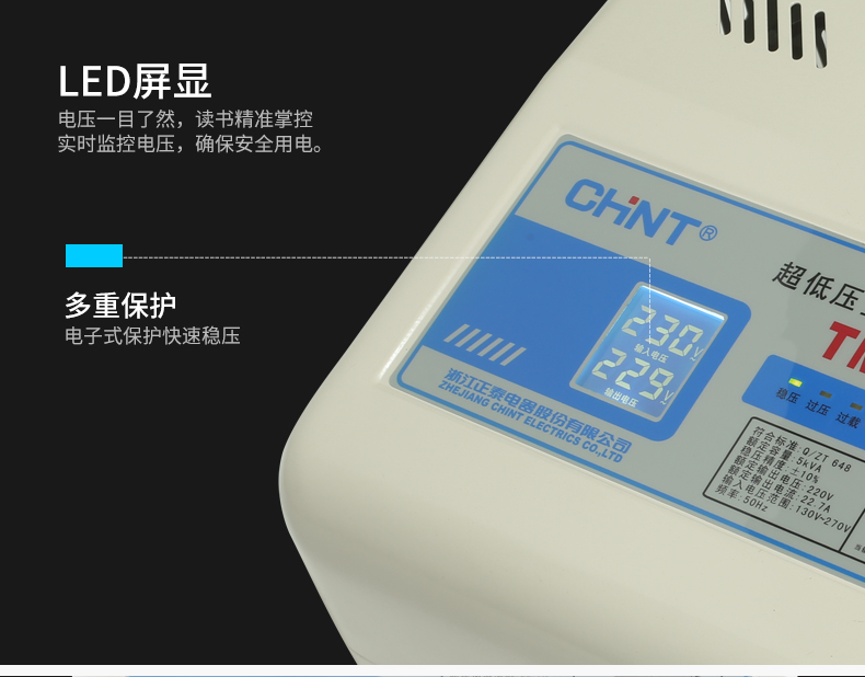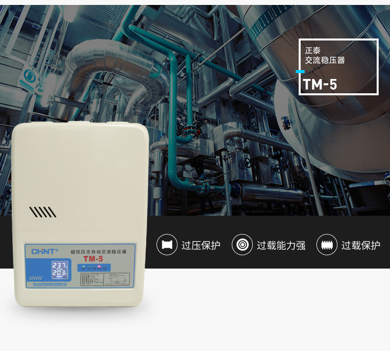 Chint (CHNT) TM-5 5000W voltage regulator 220V fully automatic household single-phase AC air conditioning voltage regulator regulated power supply