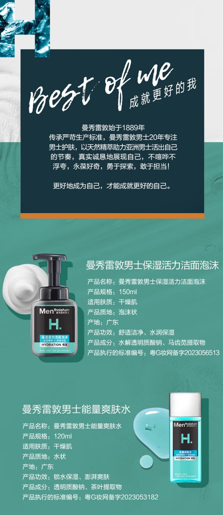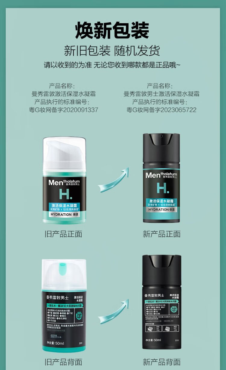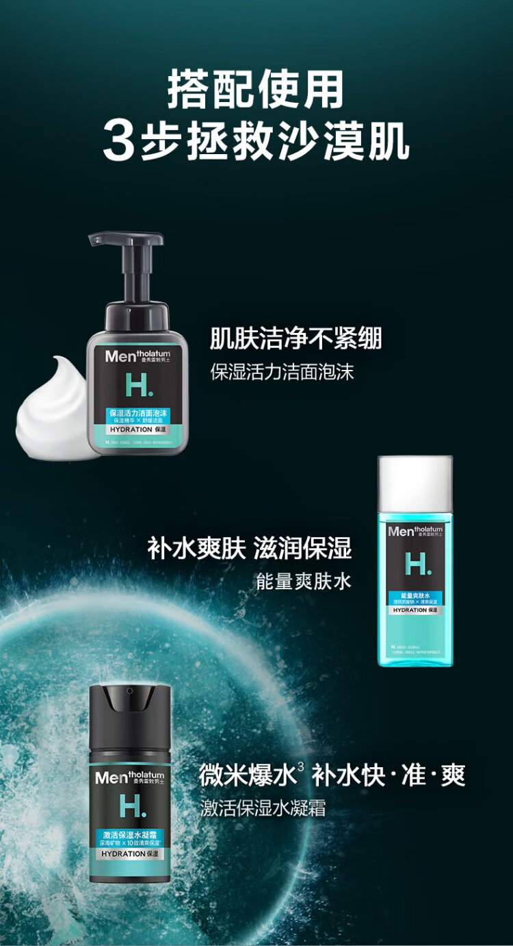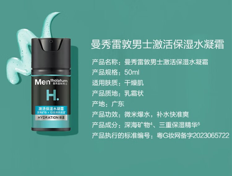 Mentholatum Men's Zhang Yixing's same style winter hydrating moisturizing water gel cream 50ml two-in-one lotion face oil facial cream
