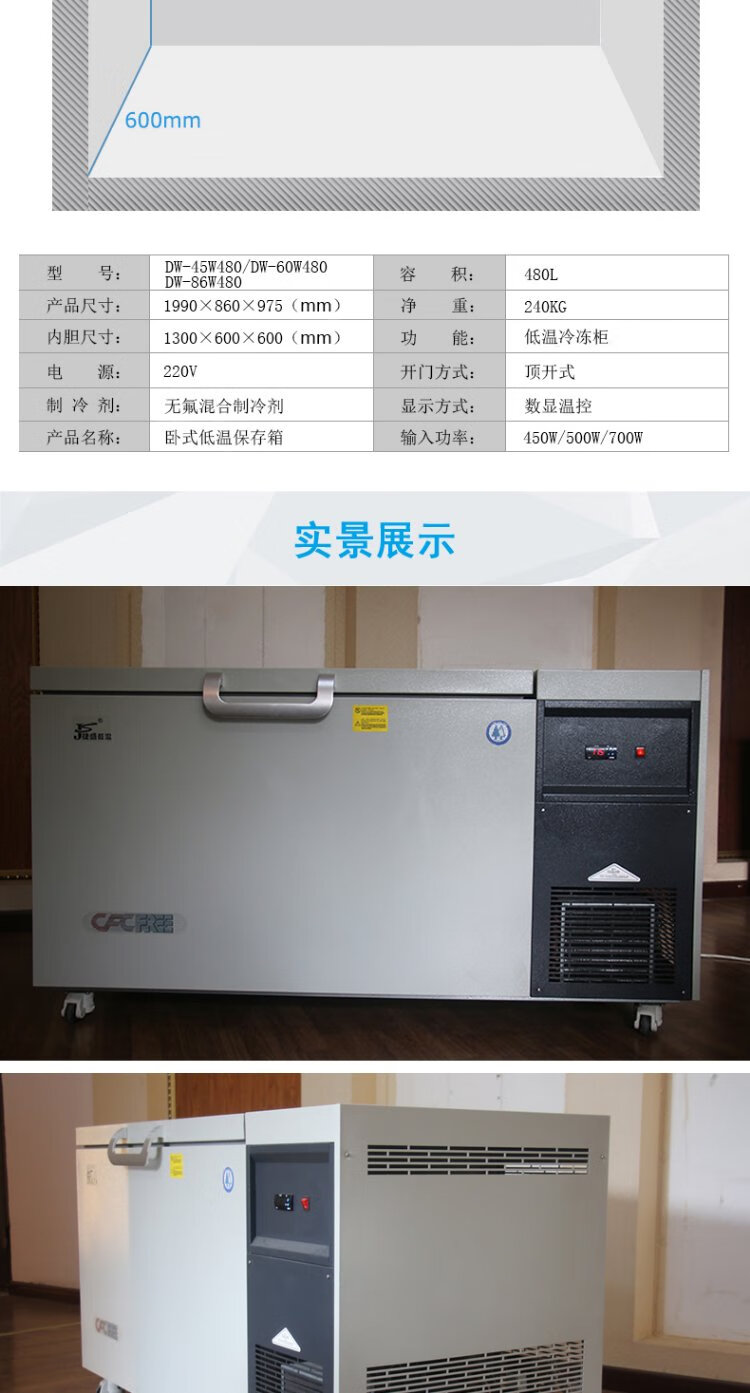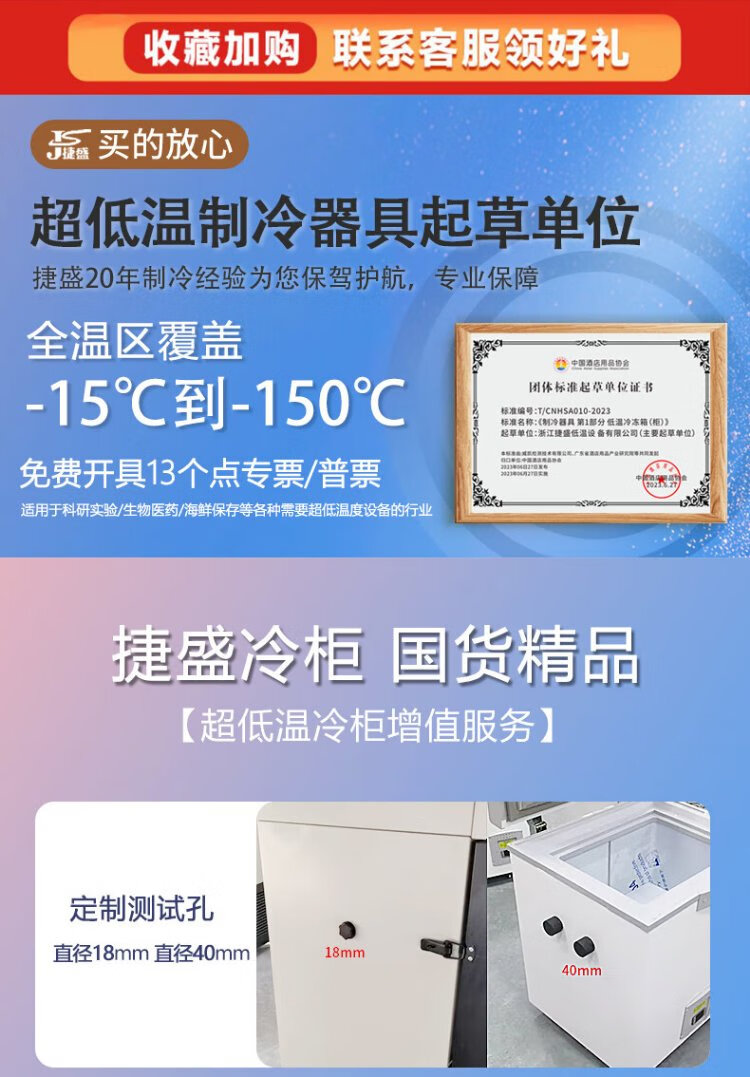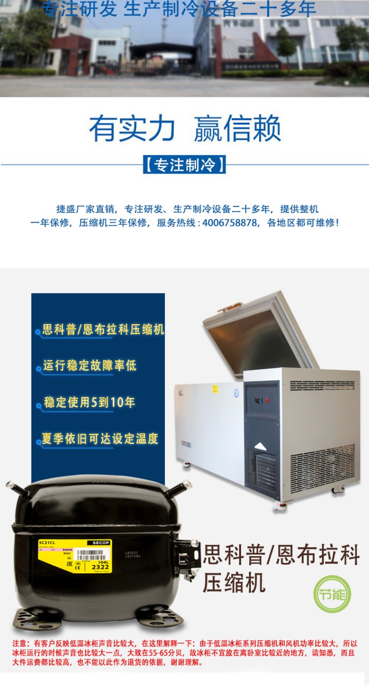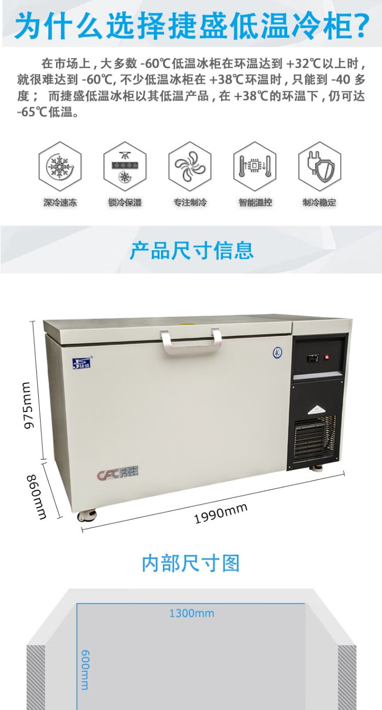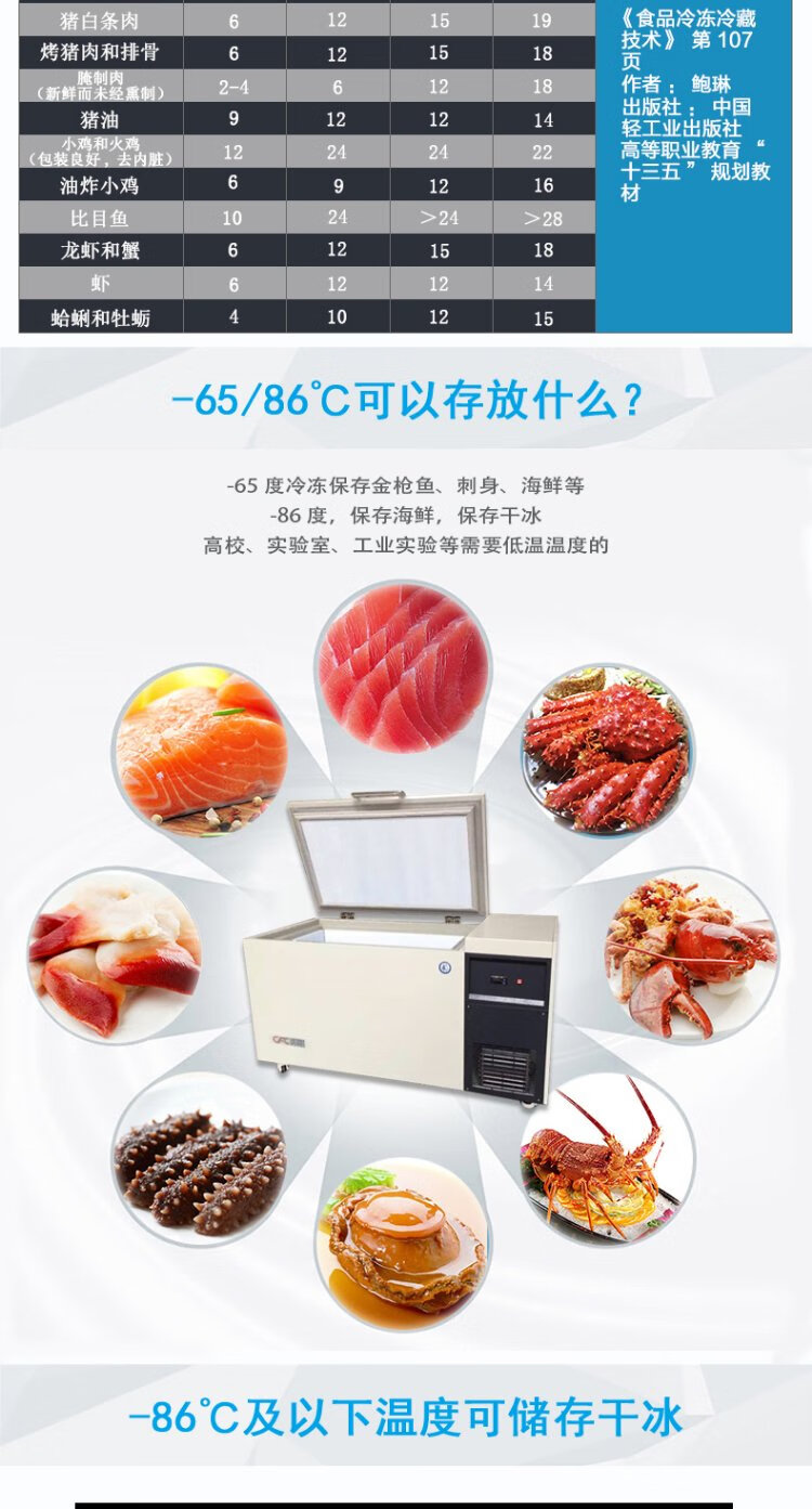 Jiesheng (JS) ultra-low temperature large capacity freezer 480L horizontal - 40/60/86 degrees cryogenic freezer quick-frozen seafood commercial test - 50 degrees 480L (-15 to -50 adjustable)