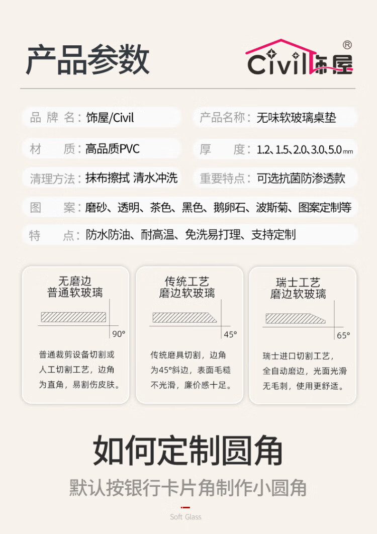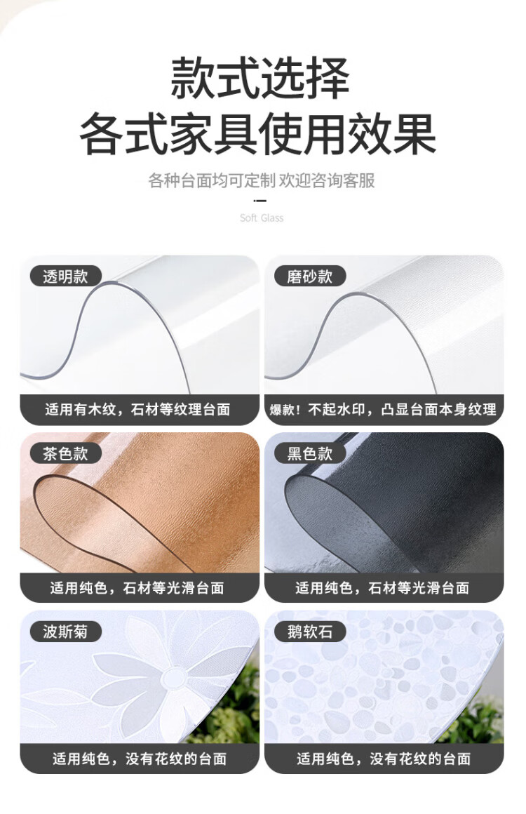 Decorative house (civil) tablecloth waterproof and oil-proof transparent table mat soft glass table mat dining table mat pvc coffee table mat countertop mat crystal plate odorless frosted 2.0mm food grade / thick enough for customization contact customer service single shot will not be shipped