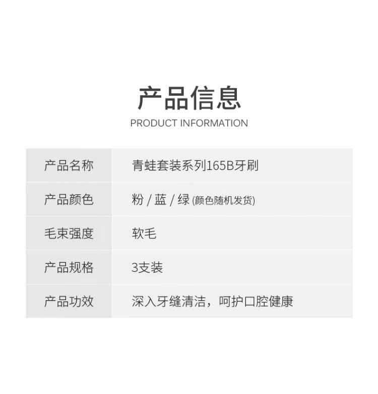 FROG set series 165B adult toothbrush 3 pieces special package soft bristles soft silk deep cleansing individual packaging