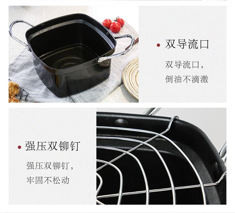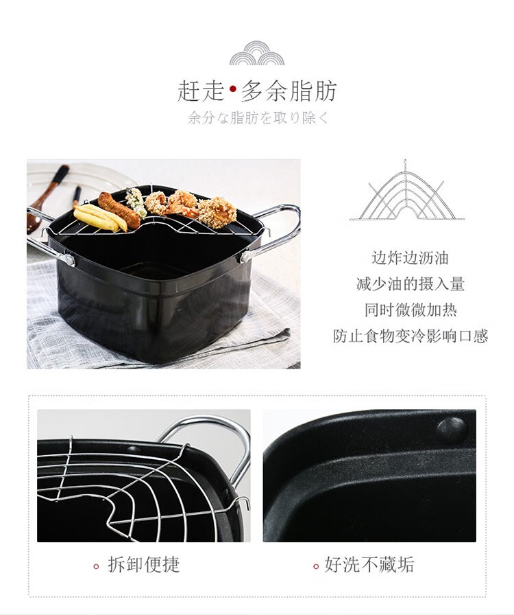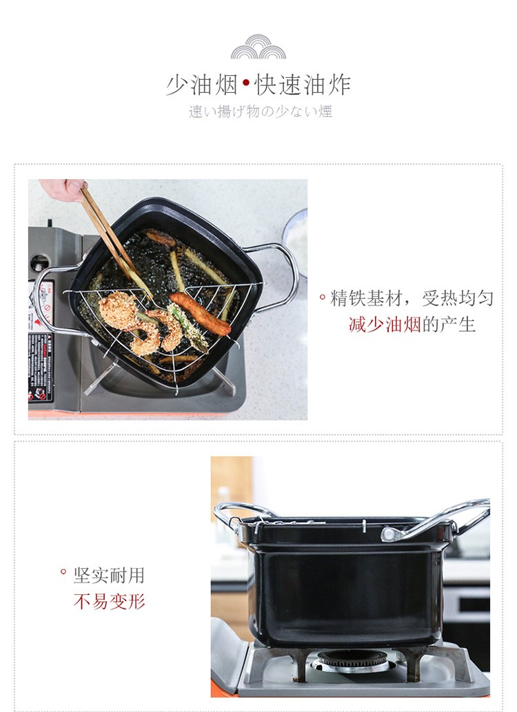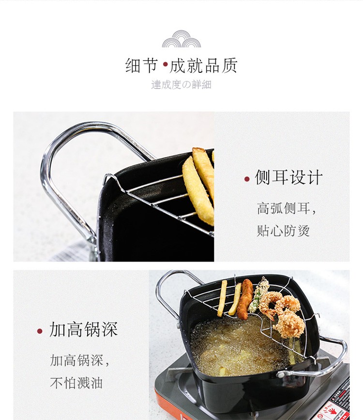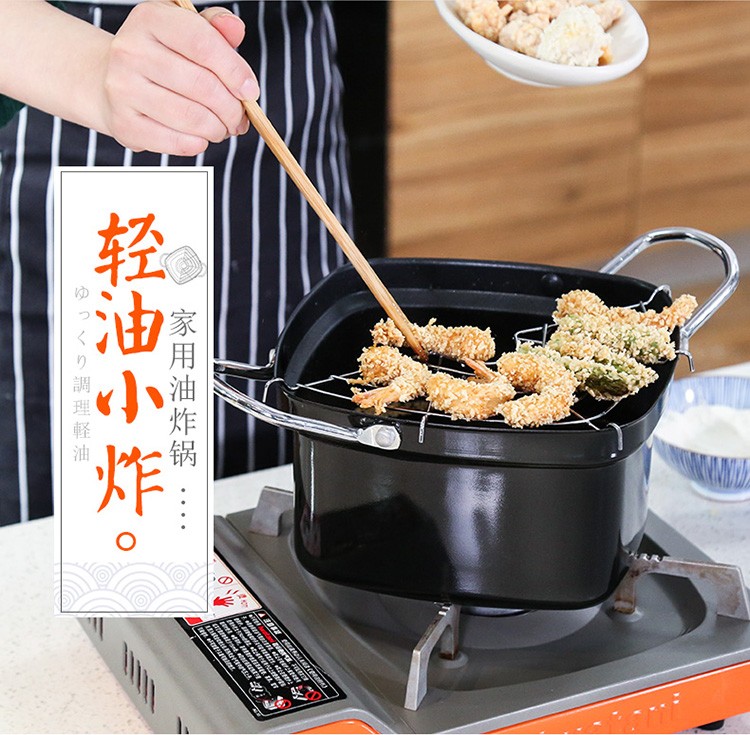 Chuidahuang Milk Pot Japanese Tempura Fryer Household Fryer + Oil Filter Rack Fine Iron Pot Can Fry or Boil 20cm