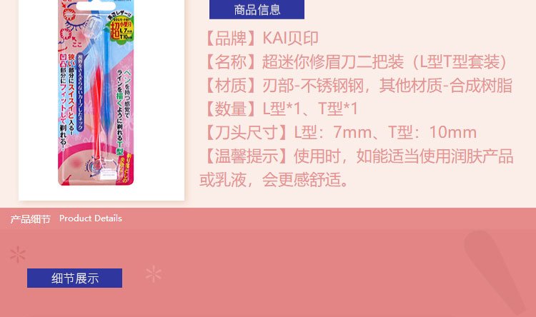 Kaiyin (KAI) super mini eyebrow trimming razor set of two (L-shaped T-shaped) precision eyebrow shaving razor for novices