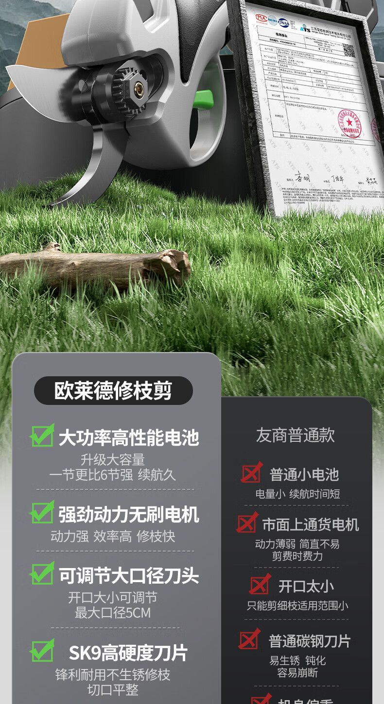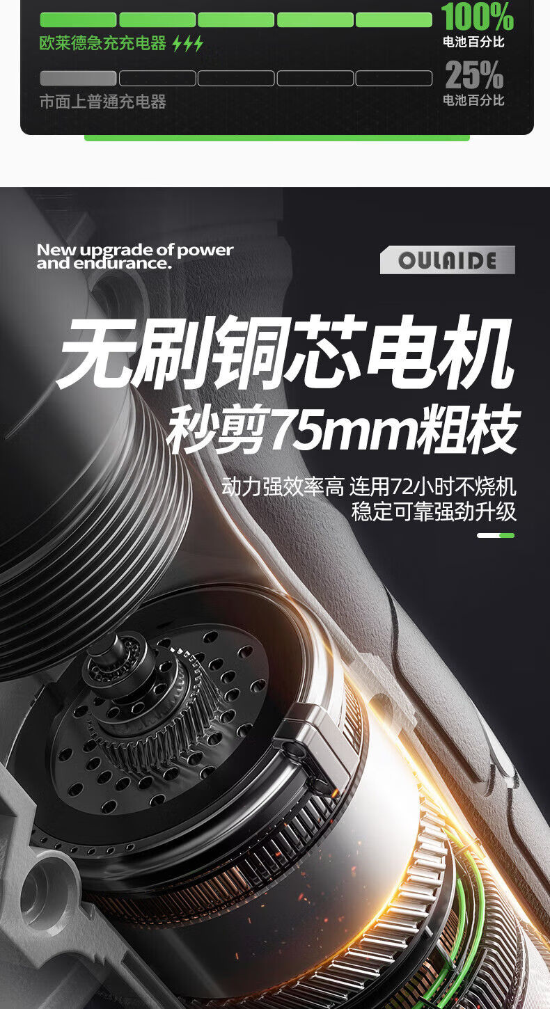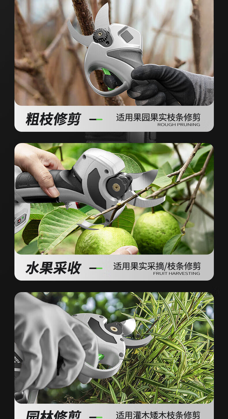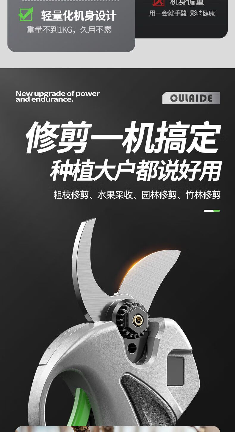OLED brushless electric pruners high-power garden special pruning fruit trees fully automatic rechargeable garden shears 21v brushless rubber-coated model 5 sections - one charge 2.0Ah