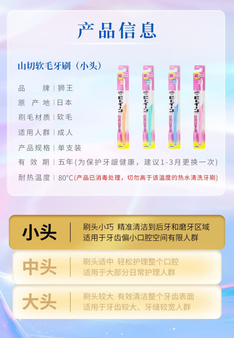 Lion adult toothbrush imported from Japan, small head, extremely fine and medium-bristle toothbrush, deep between teeth for deep cleaning of gums, 1 piece