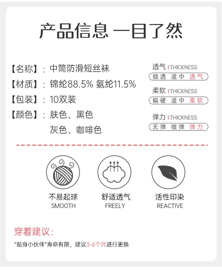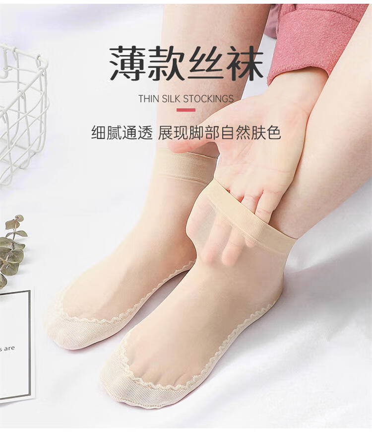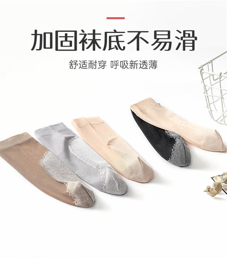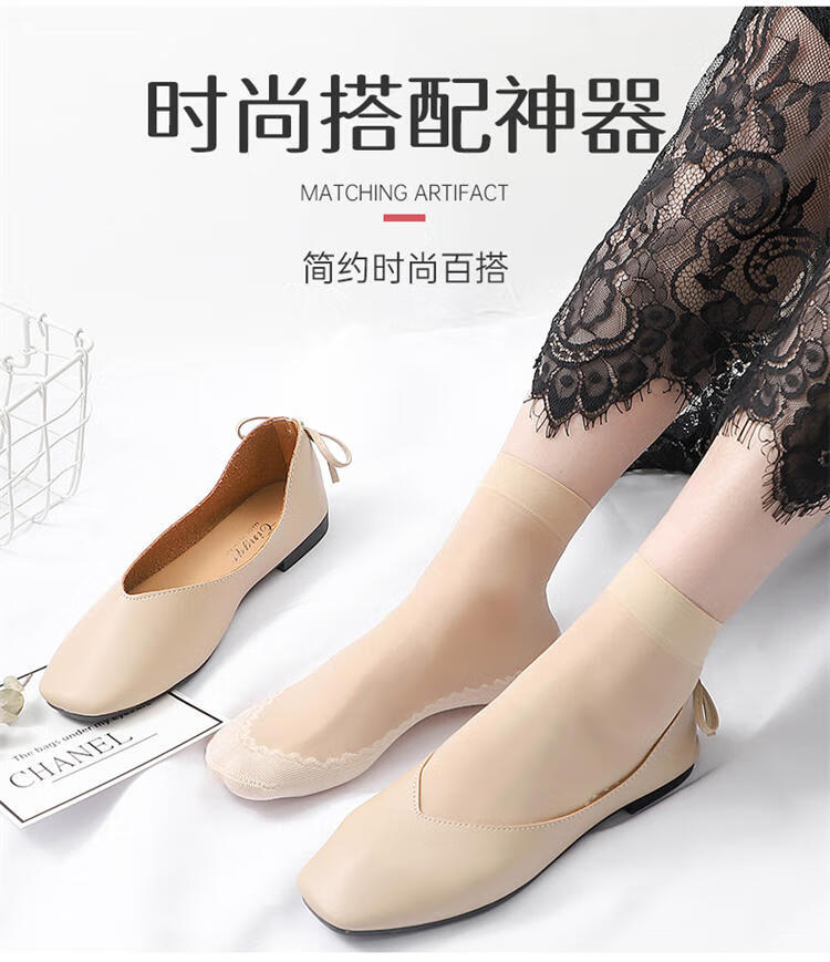 Langsha stockings short 6 pairs spring and summer thin women's socks flesh-colored mid-tube cotton-feel non-slip socks skin color 6 pairs one size