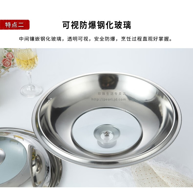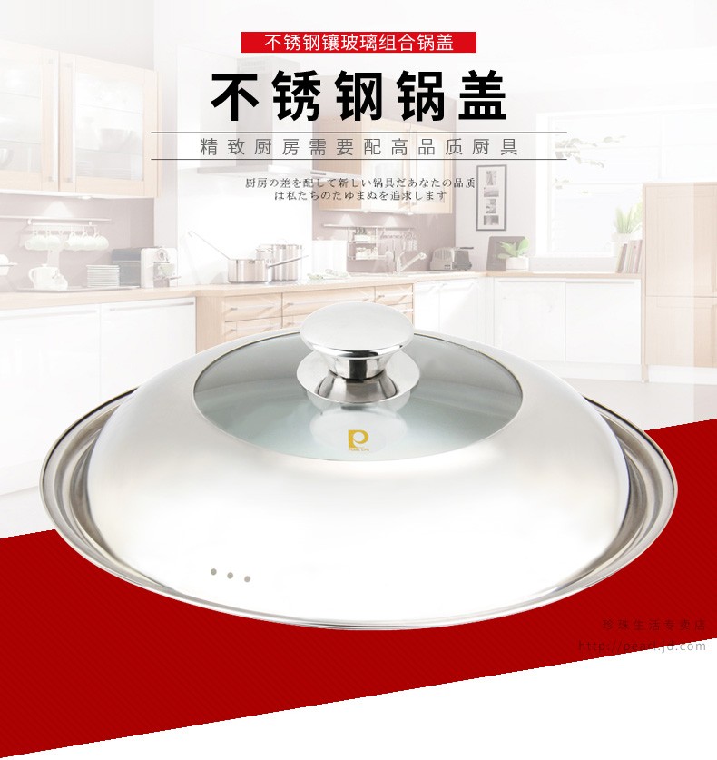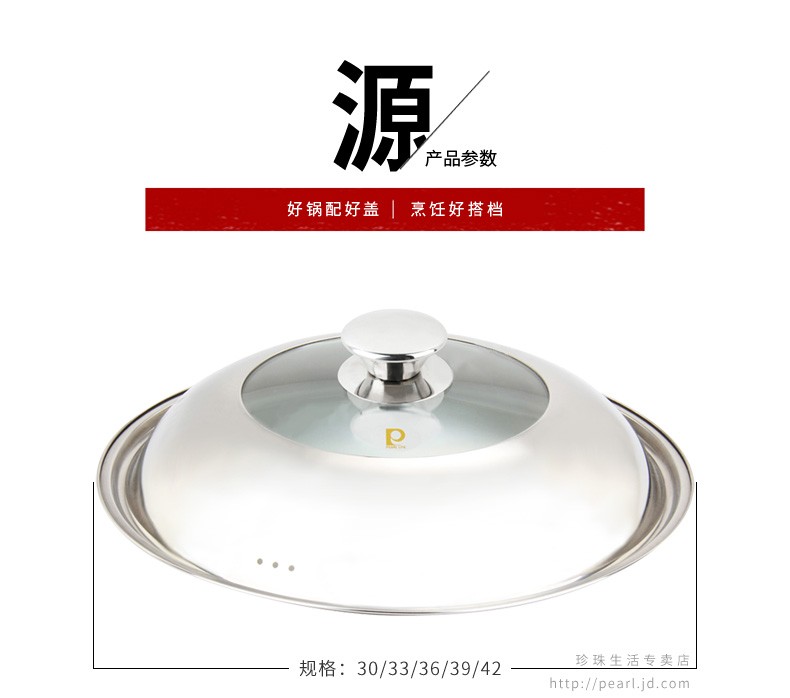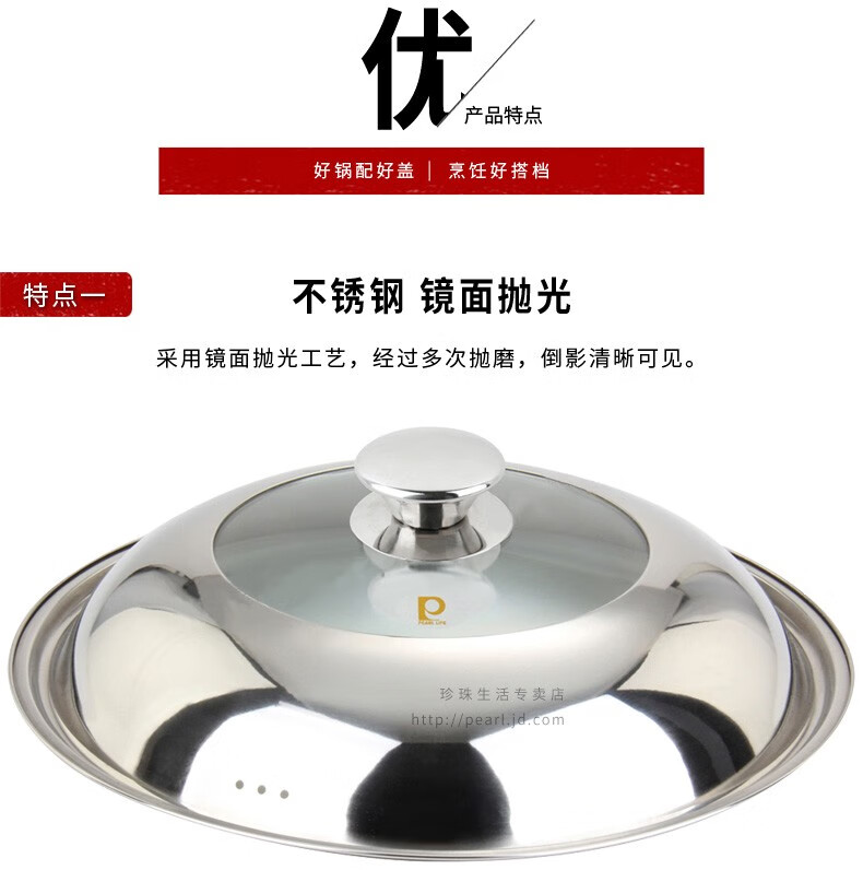 Pearl Life stainless steel pot lid, suitable for 30cm/33cm/36cm/39cm/42cm pot, visible pot lid, cooking lid, 33mm pot