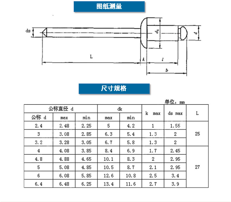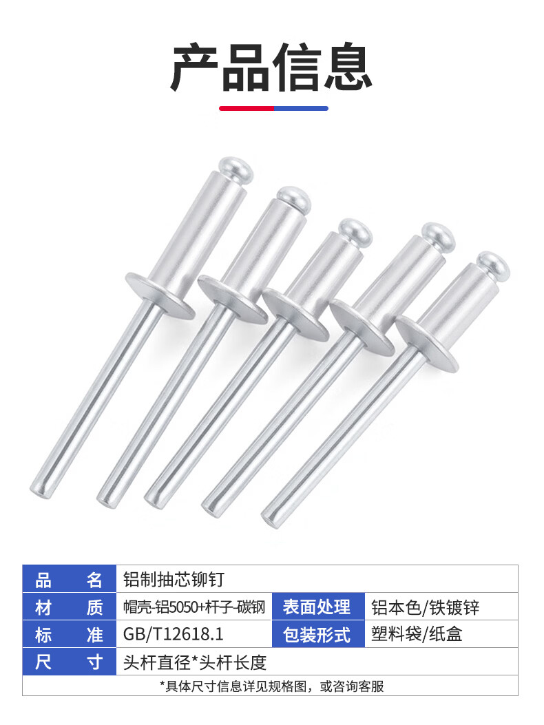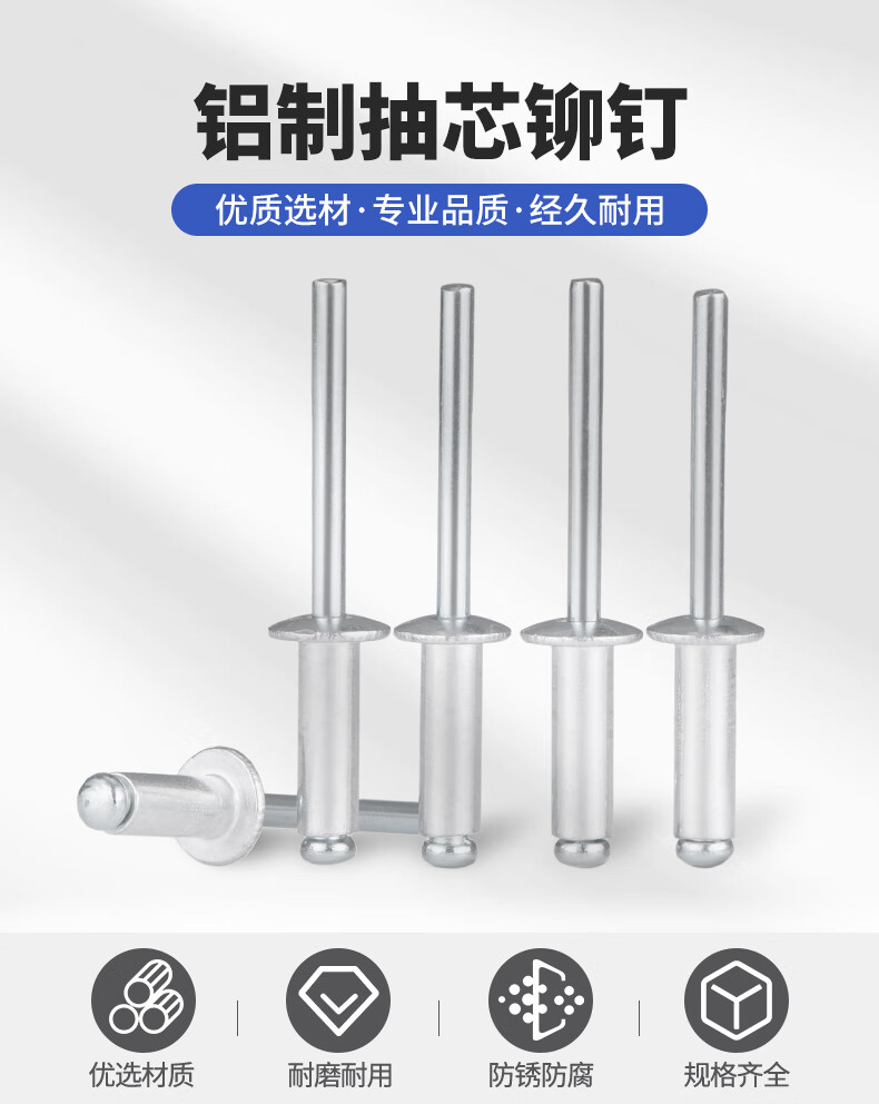 Jinggong core blind rivets, aluminum blind rivets, round head aluminum core blind rivets, boxed 4*10 (100 pcs)