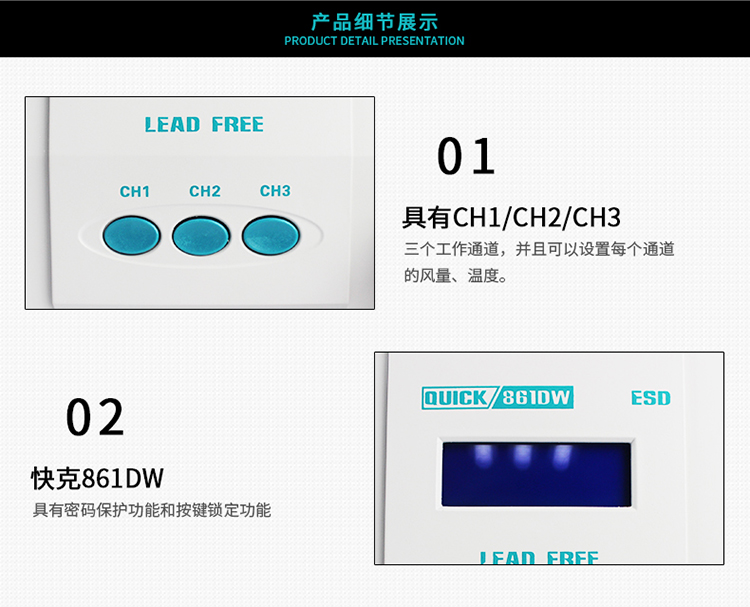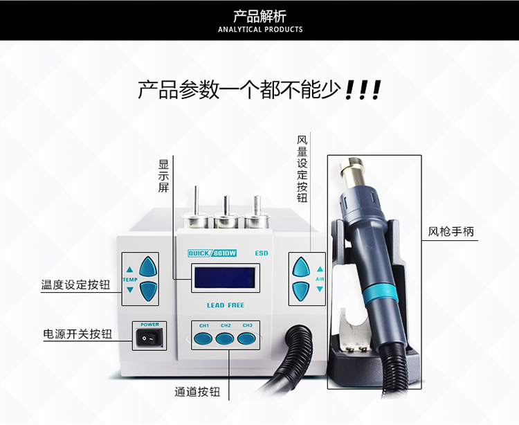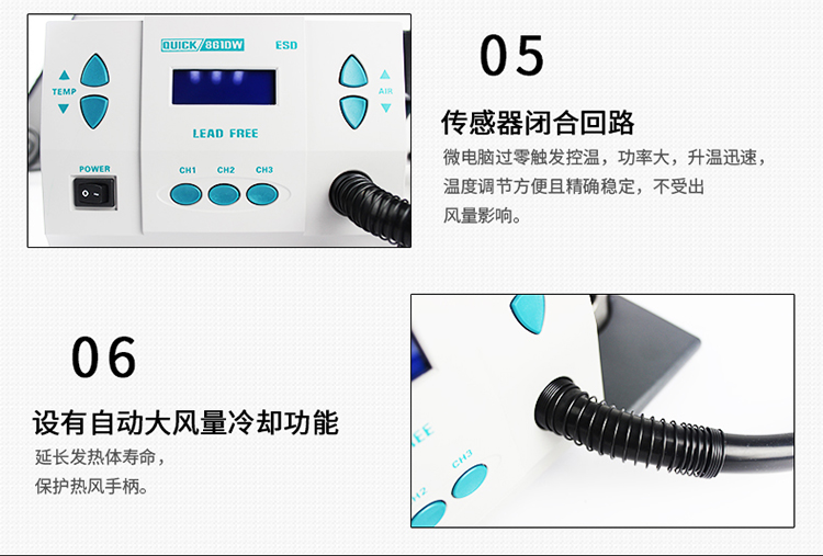 QUICK 861DW lead-free hot air desoldering station 1000W high power welding gun intelligent digital display temperature hot air gun