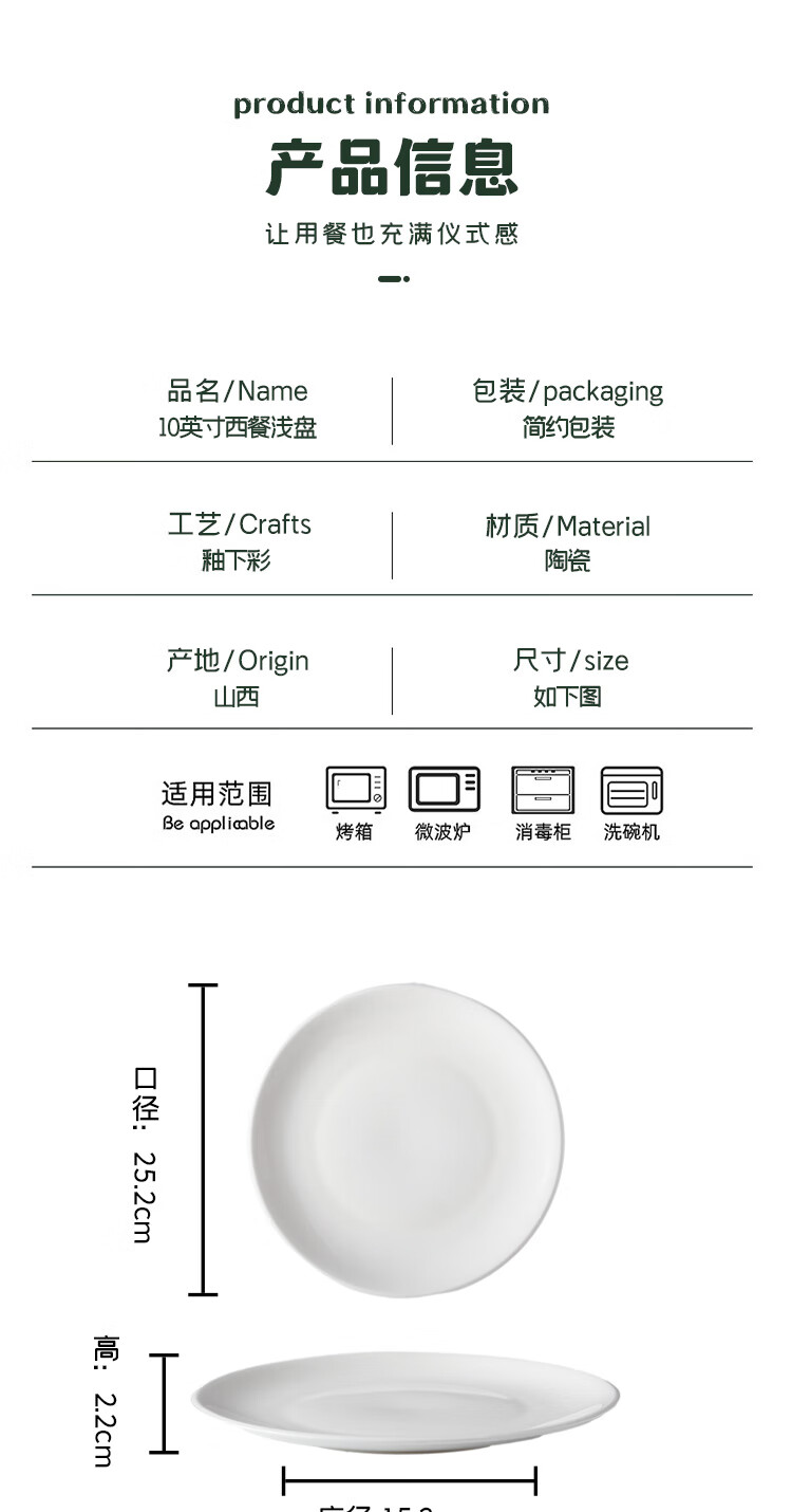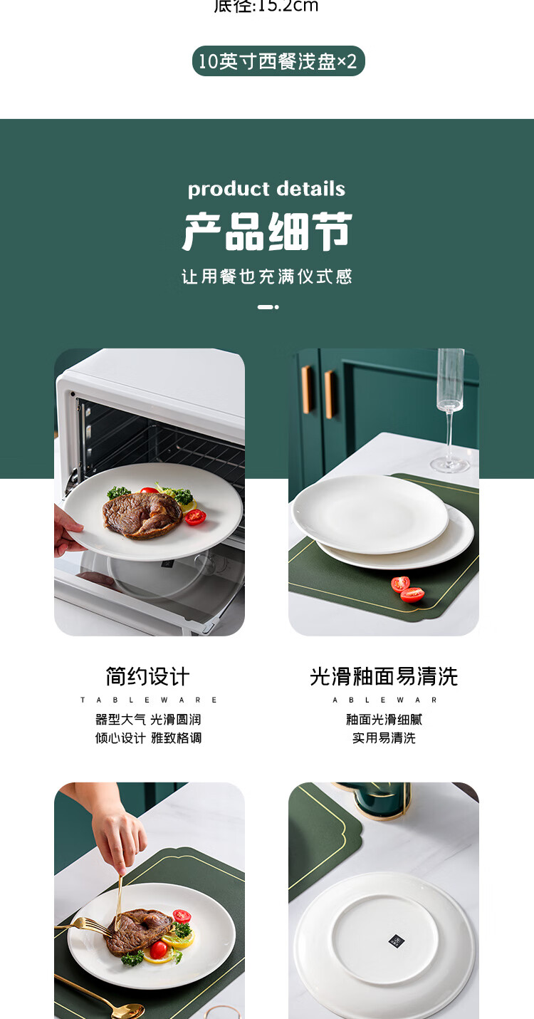 Jie Yajie Ceramic Steak Plate Home Dish Plate 10-inch European Western Plate Hotel Commercial Microwave Oven Available 2 Pack
