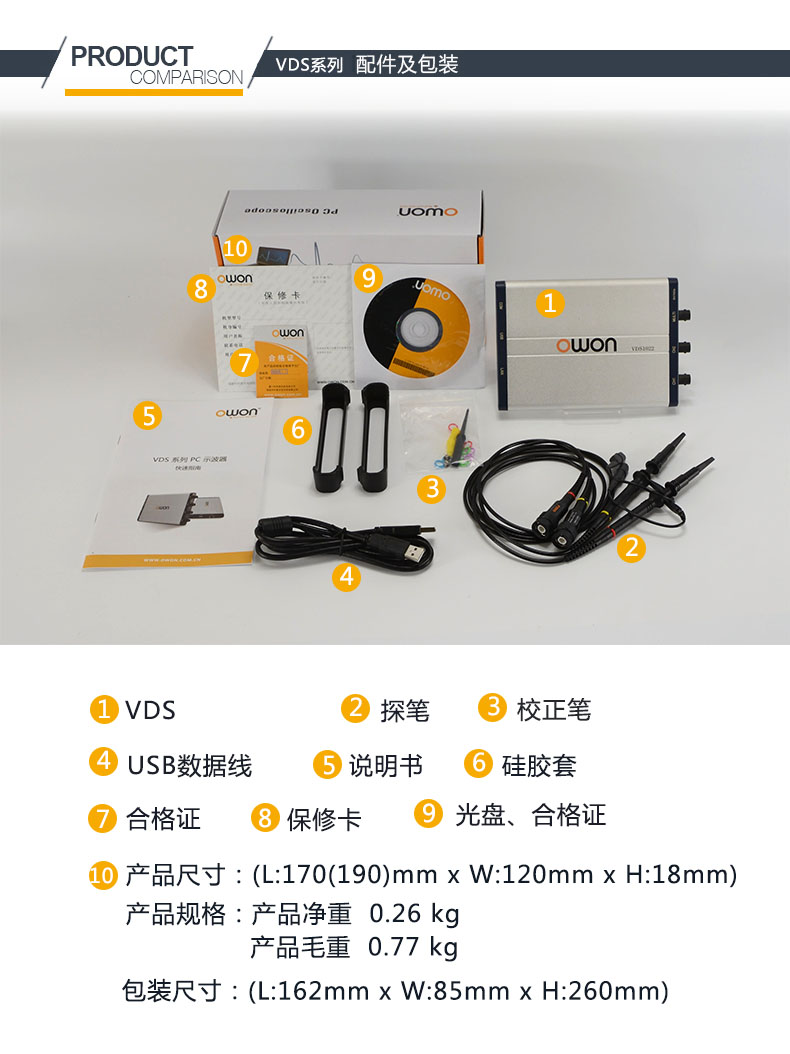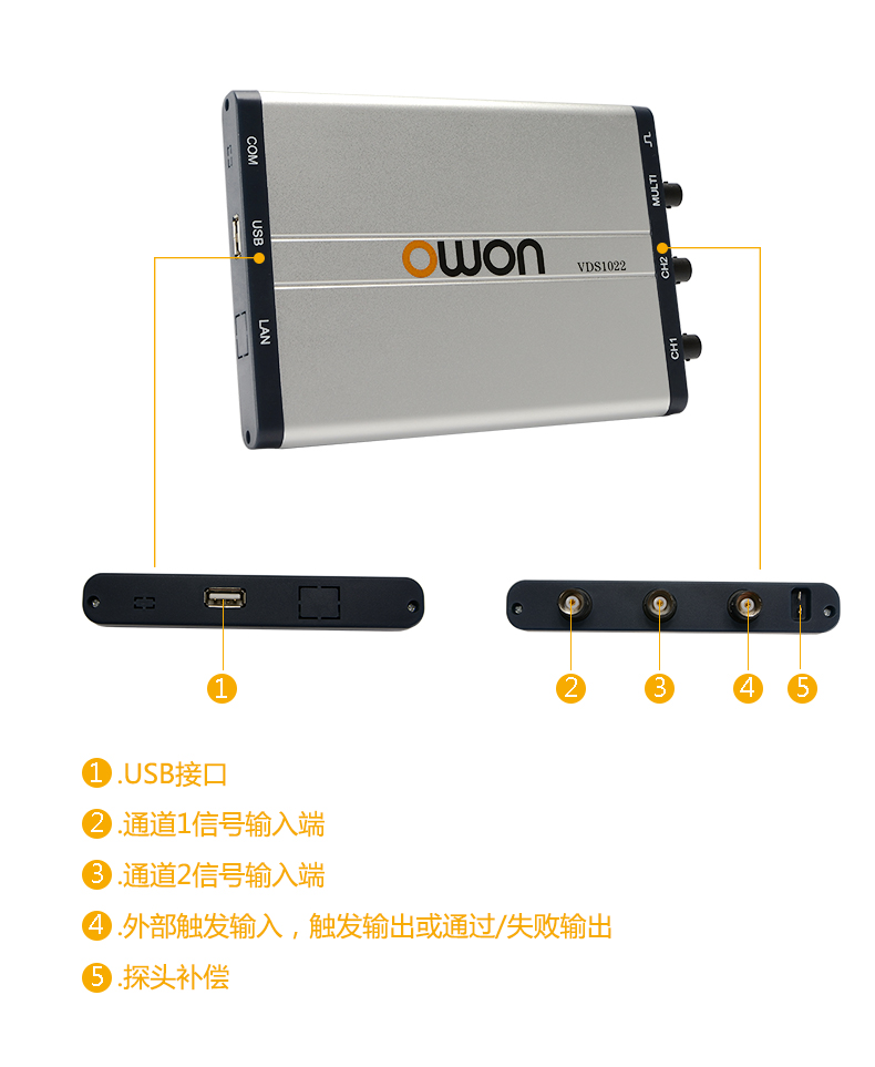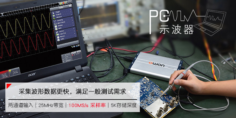 Owon Lilip PC virtual oscilloscope dual-channel USB channel isolation VDS1022(I)/2062/3102 VDS1022 25M bandwidth