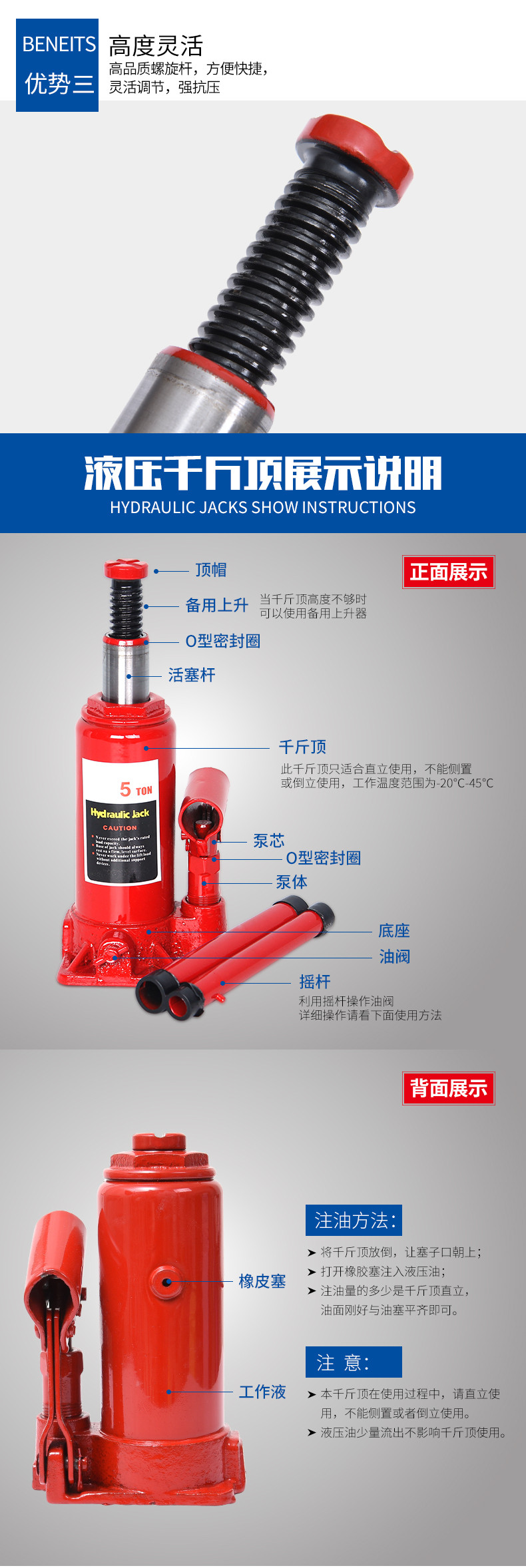 Double Elephant Vertical Hydraulic Jack Hydraulic Jack Car Car Tire Changing Hand-operated Thousand Gold Jack Labor-saving National Standard 3 Ton