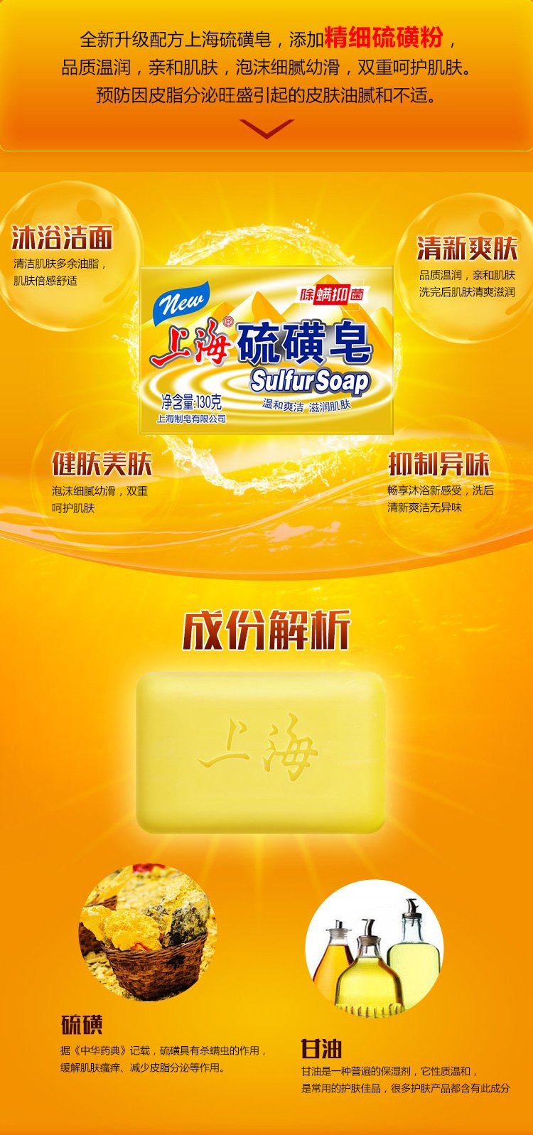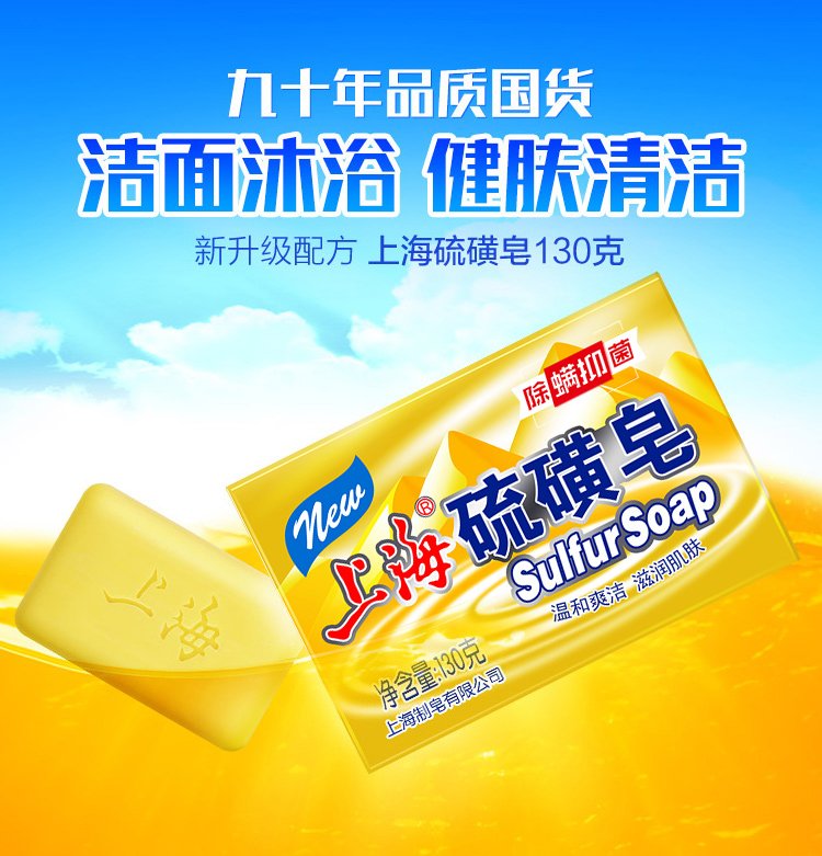 Shanghai soap sulfur soap soap mite removal bath bath shampoo hair wash face shampoo oil control sulfur bath men 130g