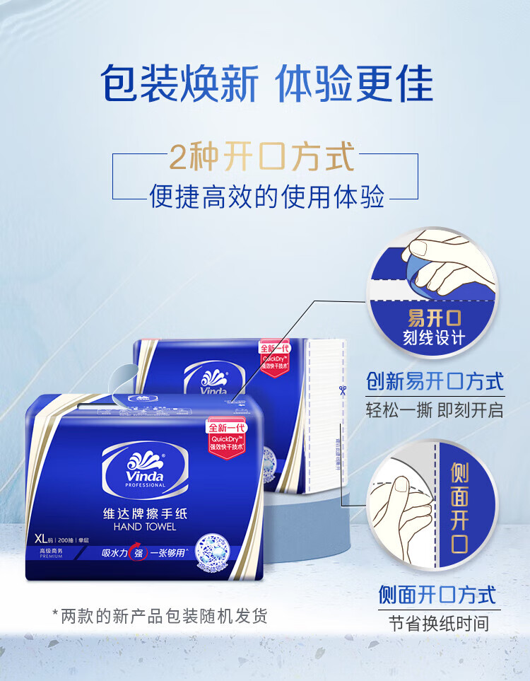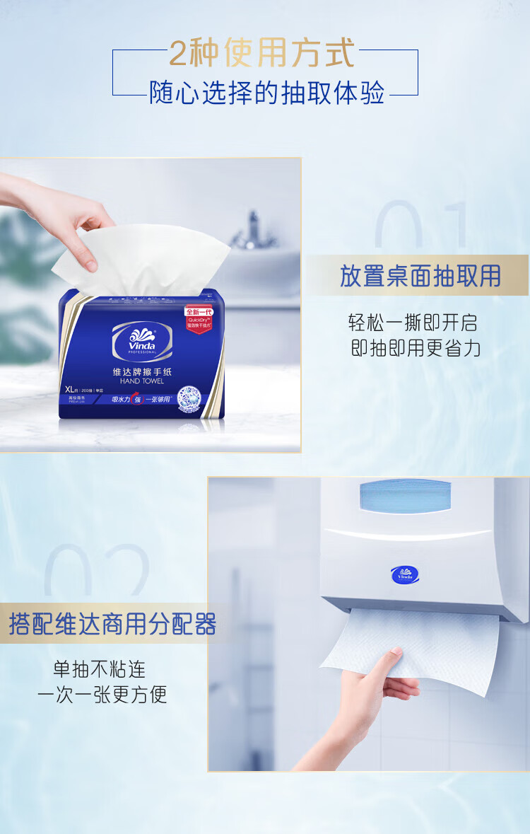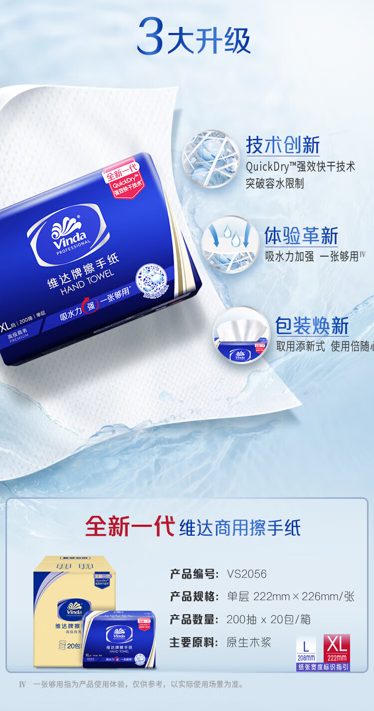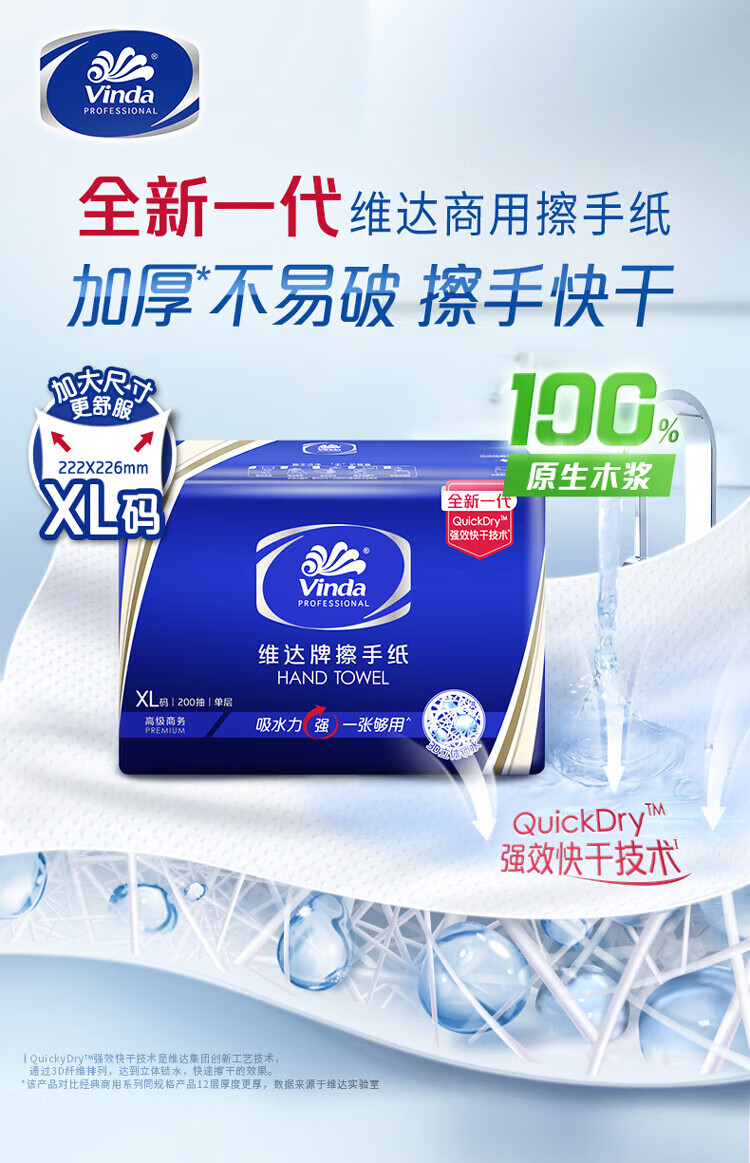 Vinda single-layer paper towels 200 packs * 20 packs XL size enlarged bathroom hotel commercial paper towels full box VS2056