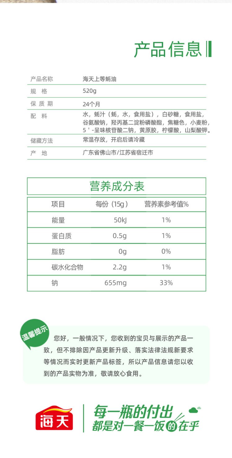 Haitian premium oyster sauce 520g*2 bottles cold stir-fry hot pot barbecue seasoning household condiment