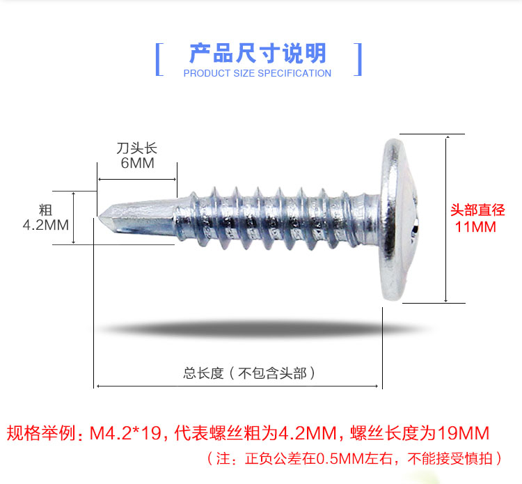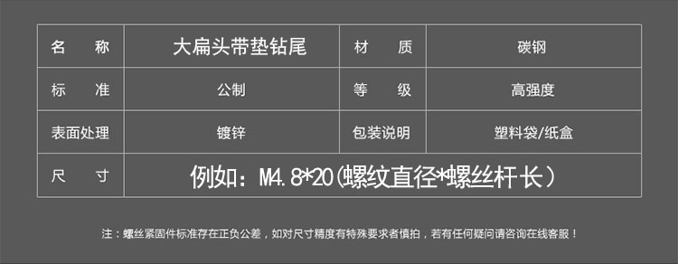 Haodong galvanized large flat head drill tail screw with pad self-tapping self-drilling screw Tievas flat round head dovetail wire M4.2M4.8 M4.2*13 (about 645 pieces per kilogram)