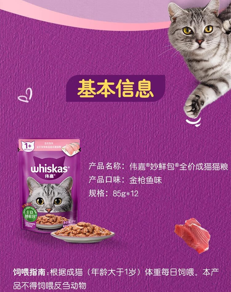 Weijia cat canned staple food imported soft package canned wet food package cat snacks Miaoxian package 85g*12 tuna flavor